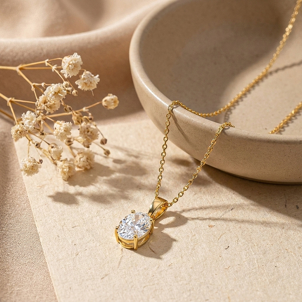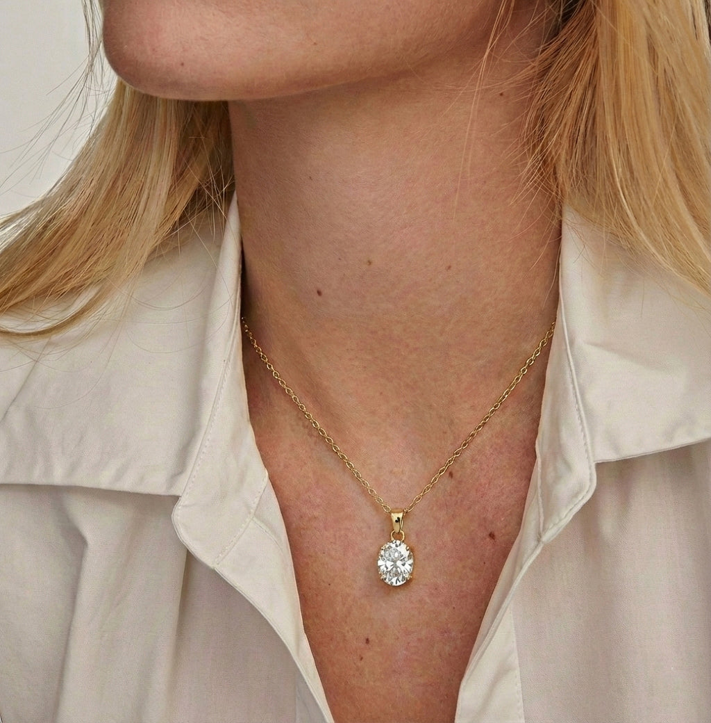Add timeless sparkle to your jewelry collection with this Cubic Zirconia solitaire pendant necklace crafted in genuine 925 sterling silver. Featuring a 9x7 mm oval faceted cubic zirconia stone (approx. 1.4 carat), this classic design delivers brilliant shine and elegance. The pendant measures 17.70 x 7 mm and includes a 16” + 2” adjustable sterling silver cable chain with a secure lobster clasp. Perfect for everyday wear or elegant gifting.