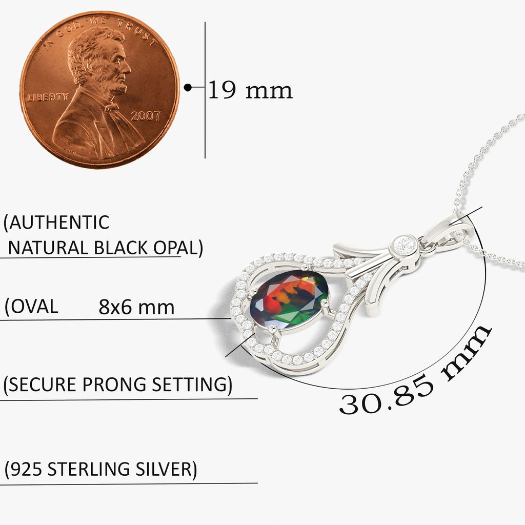 Black OpalGOODSTONE JEWELS Tear Drop Pendant Necklace, this exquisite piece features a natural 8x6 mm black opal (1.0 carat) set in 925 sterling silver, offering a unique blend of luxury and everyday wearability. Crafted with precision, the pendant boasts a graceful teardrop shape and measures 30.85 x 15.70 mm. The high-polish finish enhances the beauty of the opal, making it a stunning statement piece for any outfit or occasion. Whether it's for a birthday, anniversary, Mother’s Day, or a “just because” moment, this necklace is a thoughtful gift that speaks volumes. It comes in a stylish gift box, ready to delight your loved one. Made with hypoallergenic 925 sterling silver, this necklace is gentle on sensitive skin while providing durability and shine that lasts.