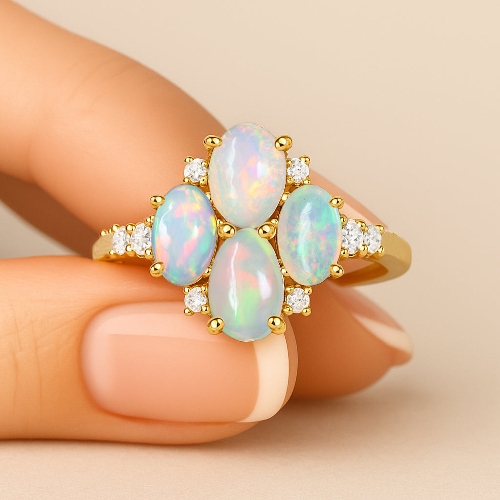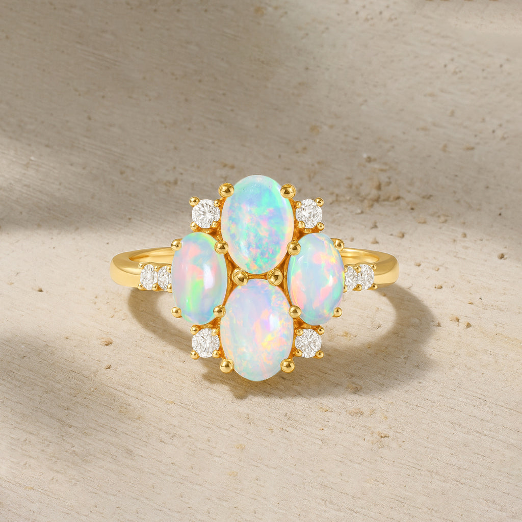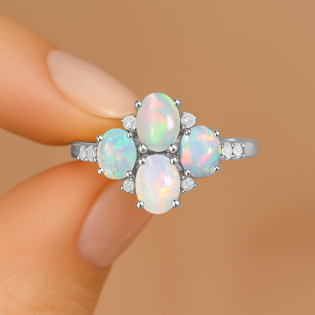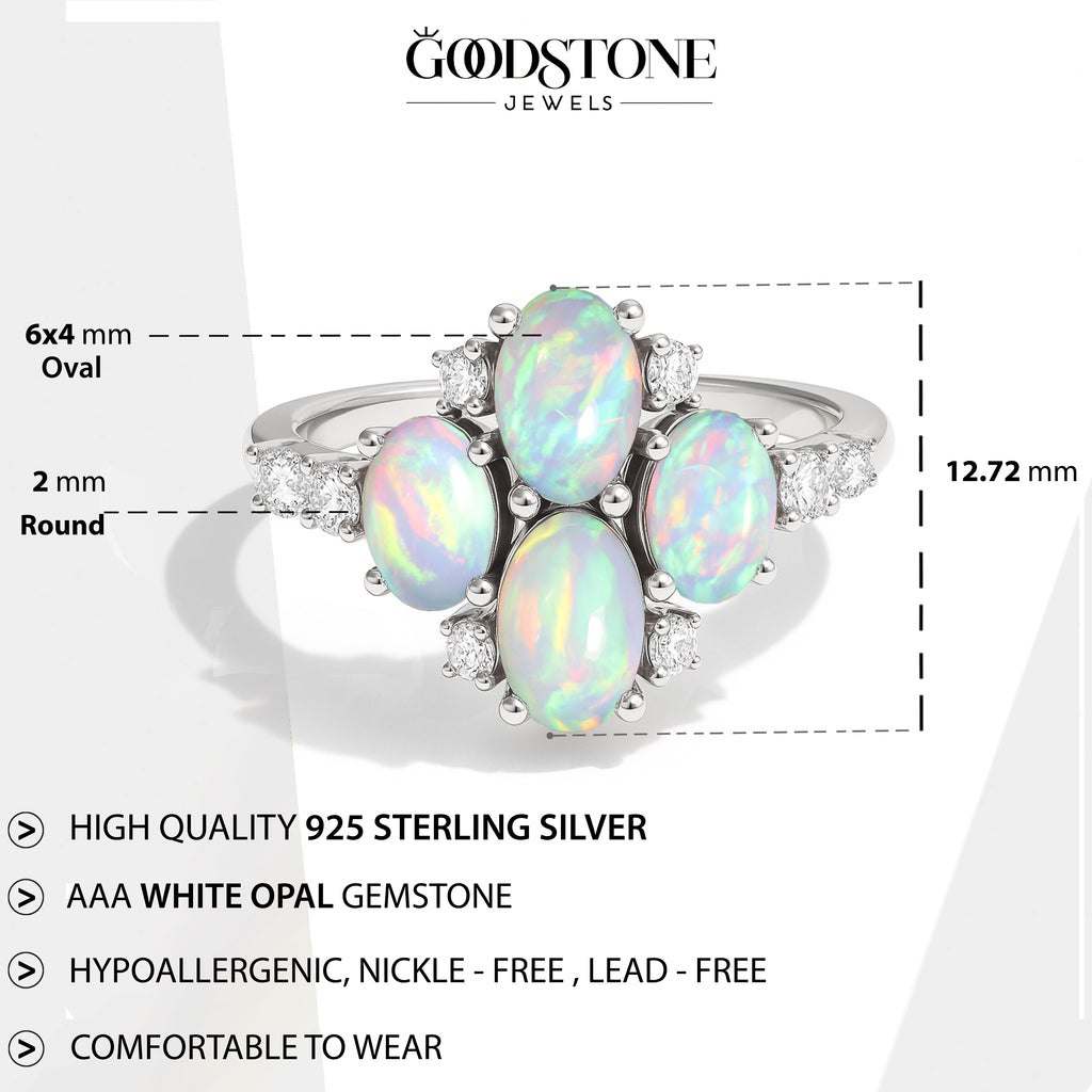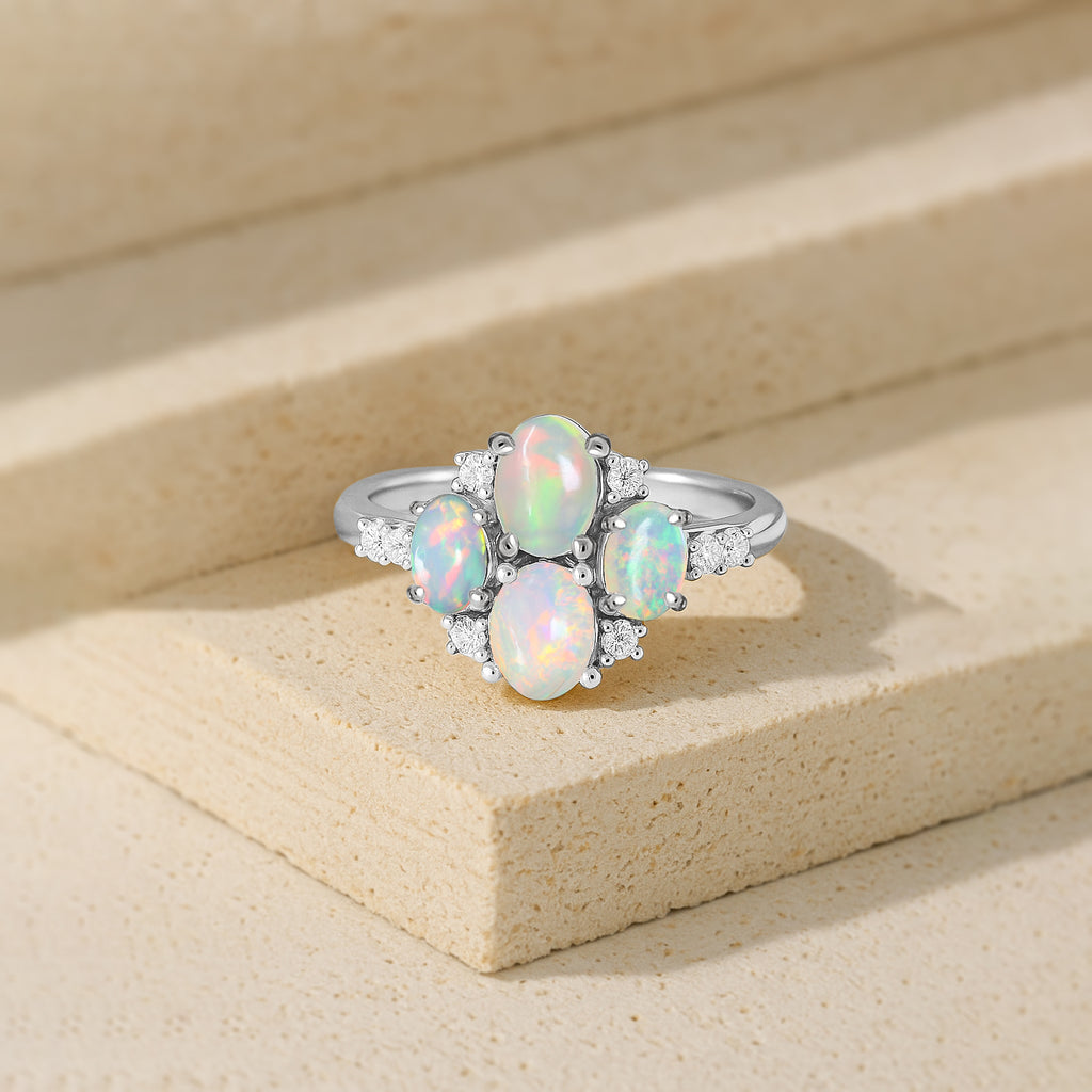 White OpalElevate your style with this stunning White Opal Oval Cluster Ring crafted in 925 sterling silver. Featuring a smooth 6x4 mm oval White Opal with a total carat weight of 1.60 Crt, this ring radiates a delicate, ethereal glow. The exquisite cluster design enhances the gemstone’s brilliance, making it a perfect statement piece for any occasion. With a ring size of 12.72 and weighing approximately 3.60 gm, it combines elegance with comfort for daily wear or special events. Ideal as a thoughtful gift or a timeless addition to your jewelry collection, this ring beautifully captures sophistication, charm, and luxury in one mesmerizing design.