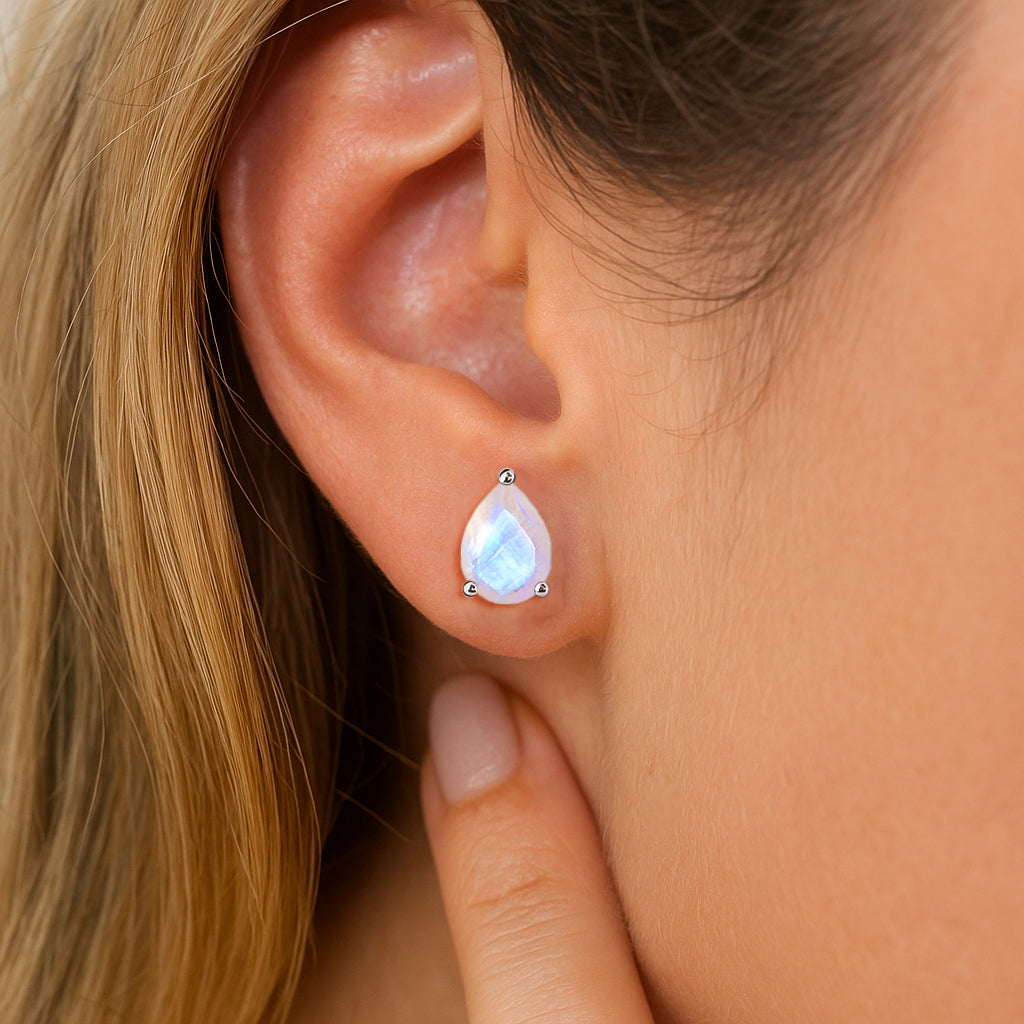 MoonstoneElevate your everyday elegance with these exquisite Moonstone Pear Stone Stud Earrings, crafted in premium 925 sterling silver. Featuring a smooth 7x5 mm pear-cut moonstone totaling 0.75 ct, each earring offers vibrant color and timeless charm. Lightweight at approximately 0.58 g, they provide comfortable wear while adding a refined touch to any look. A perfect blend of sophistication and simplicity for any jewelry collection.