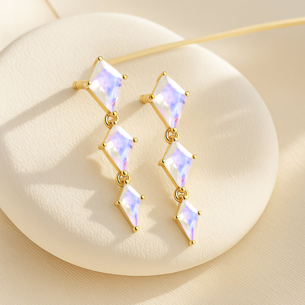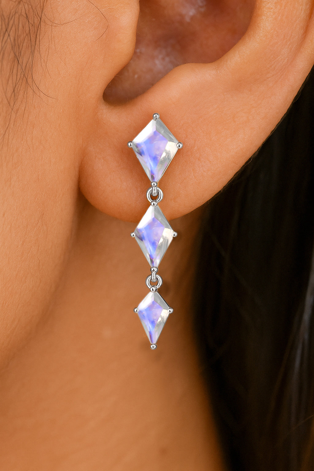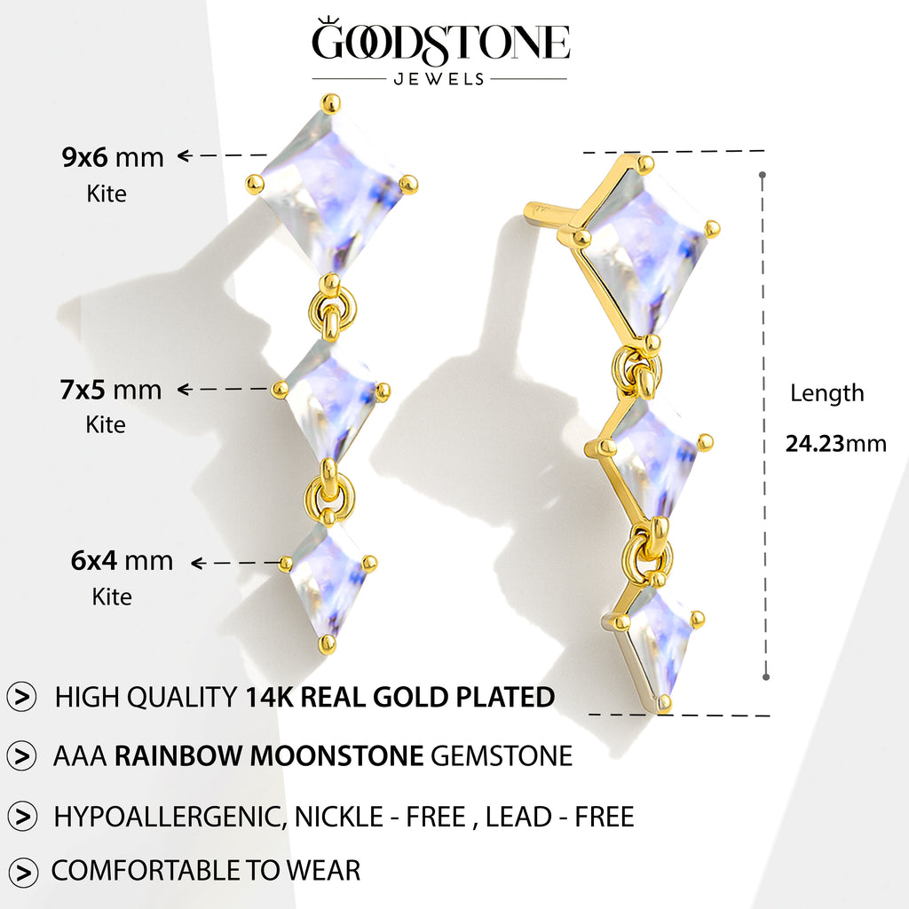 MoonstoneElevate your style with these Moonstone Kite Stone Drop Earrings, crafted in solid 925 sterling silver. Featuring a stunning trio of kite-shaped moonstones in sizes 6x4 mm, 7x5 mm, and 9x6 mm, this elegant design creates a graceful cascading look. With a total weight of approx. 5.30 crt and a refined size of 24.23x6.33 mm, these earrings offer a luminous shimmer and timeless charm. Lightweight at approx. 4.10 gm, they are perfect for both everyday wear and special occasions.