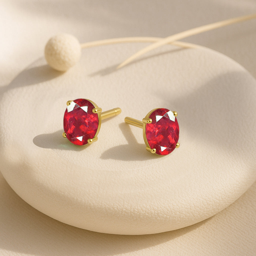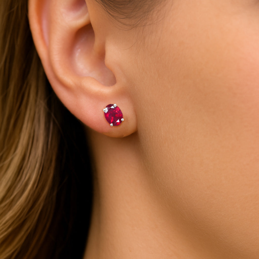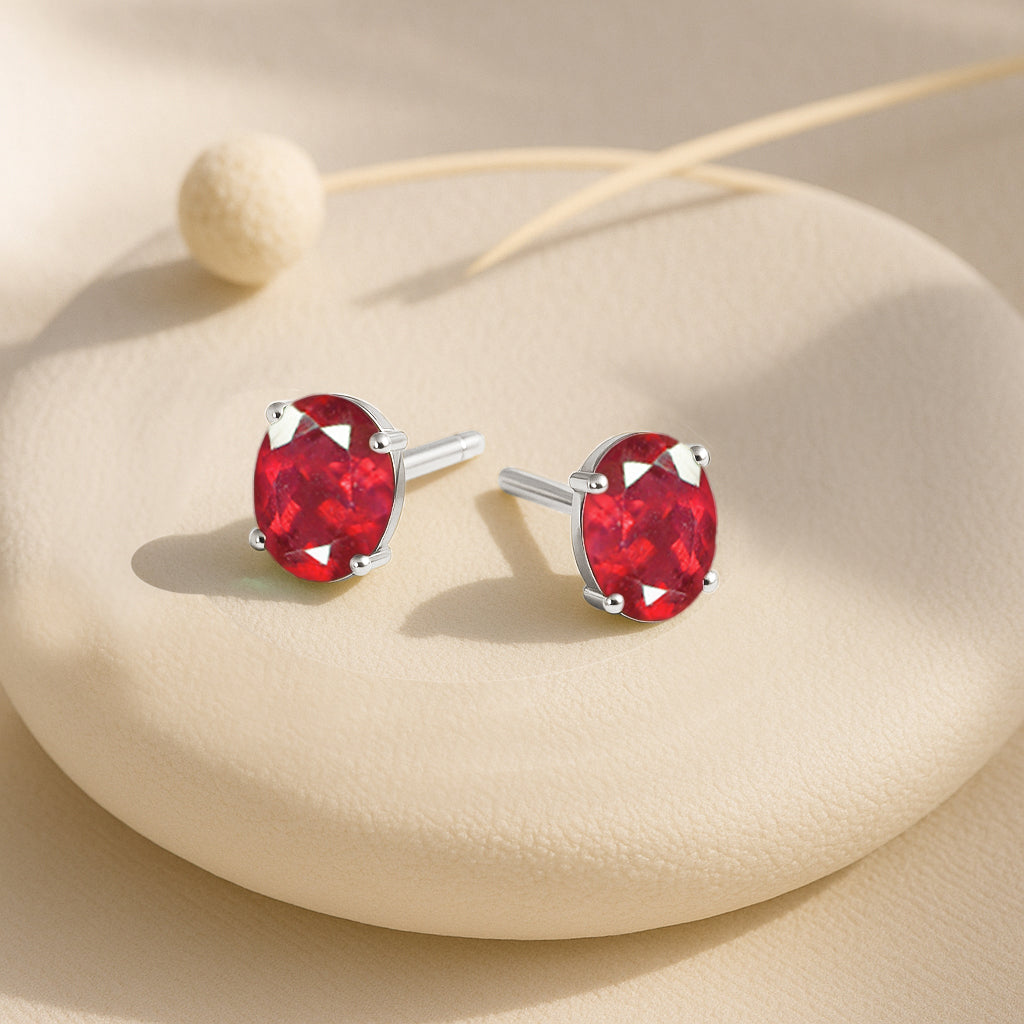 RubyDiscover timeless elegance with our Ruby Oval Stud Earrings, crafted in premium 925 Sterling Silver. Each earring features a smooth 7x5 mm oval ruby weighing 0.75 ct, offering a soft, natural glow perfect for any occasion. Designed with a sleek 7.30x5.30 mm profile and a lightweight 0.62 gm build, these studs provide comfort and sophistication in every wear. A beautiful everyday accessory and a meaningful gift for someone special.