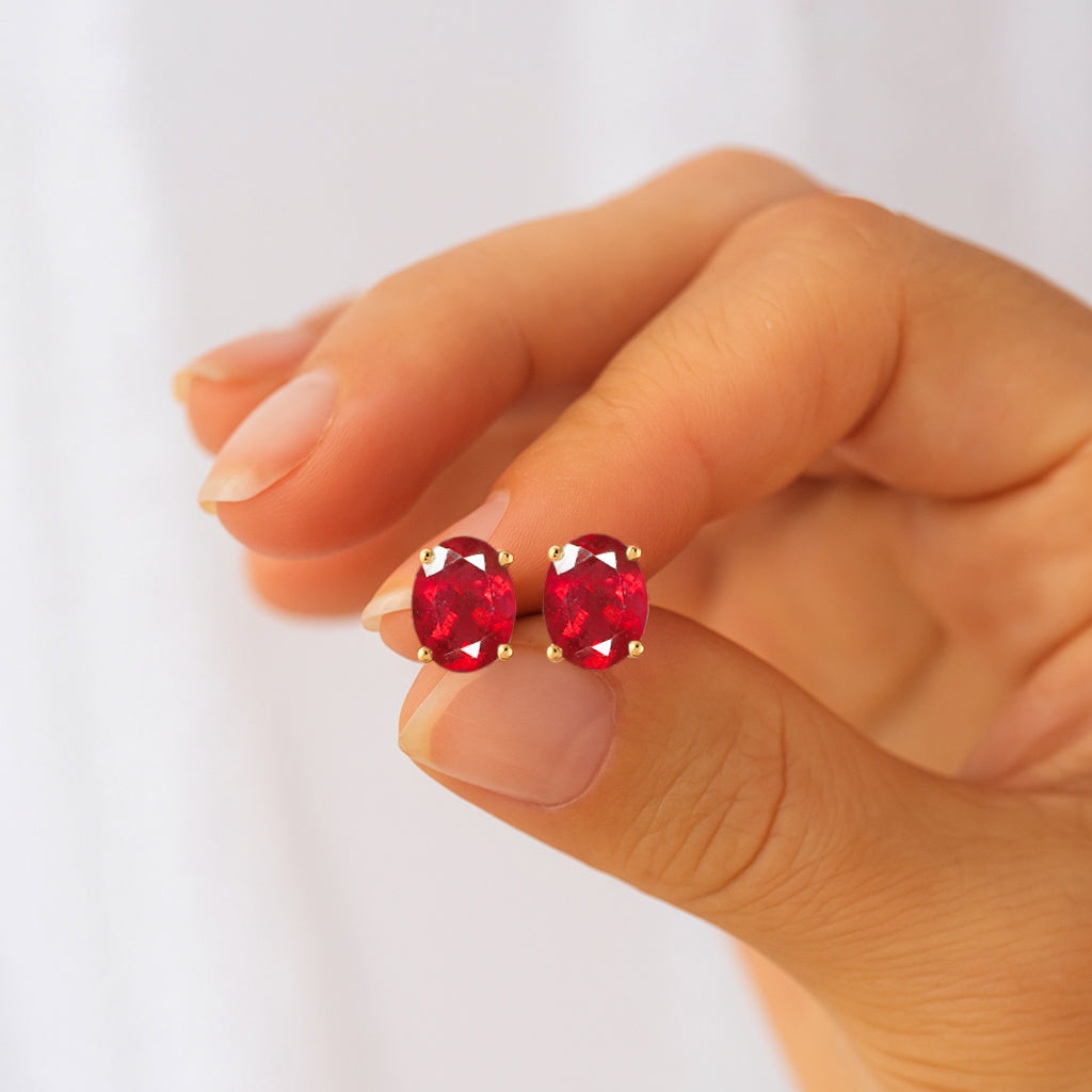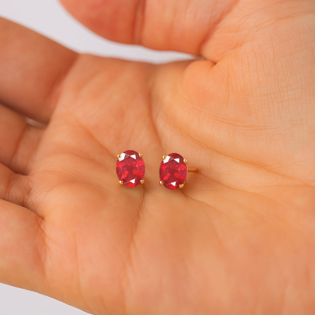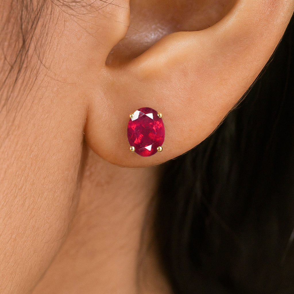 RubyDiscover timeless elegance with our Ruby Oval Stud Earrings, crafted in premium 925 Sterling Silver. Each earring features a smooth 7x5 mm oval ruby weighing 0.75 ct, offering a soft, natural glow perfect for any occasion. Designed with a sleek 7.30x5.30 mm profile and a lightweight 0.62 gm build, these studs provide comfort and sophistication in every wear. A beautiful everyday accessory and a meaningful gift for someone special.