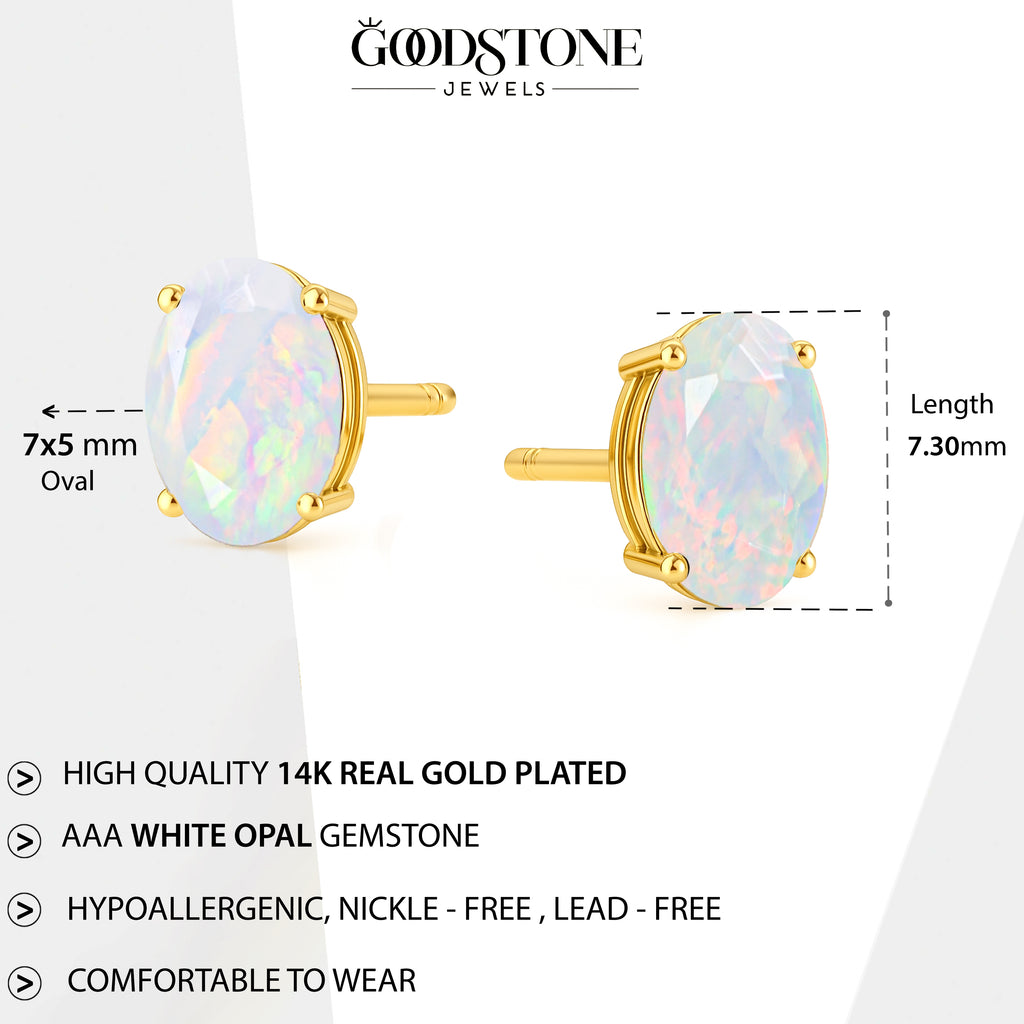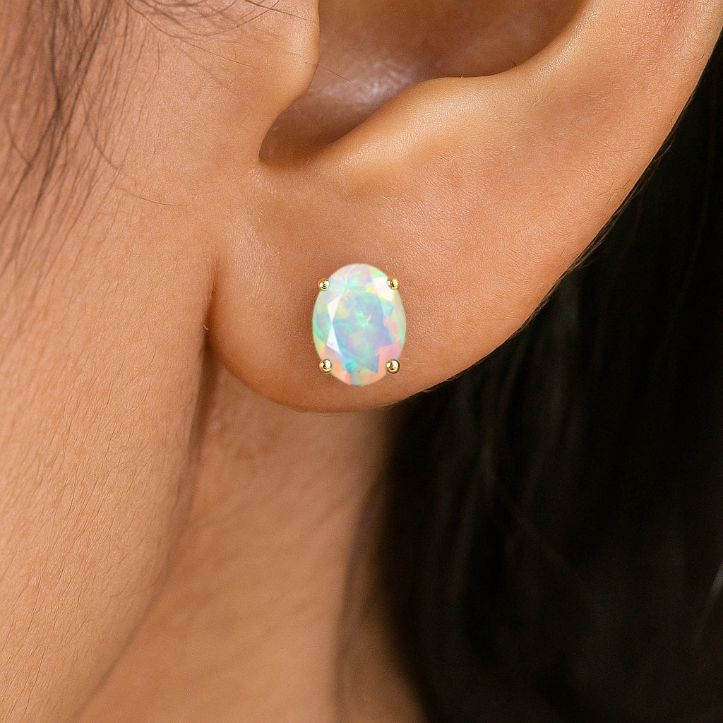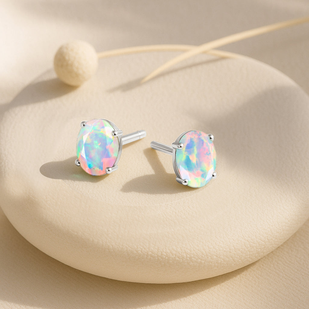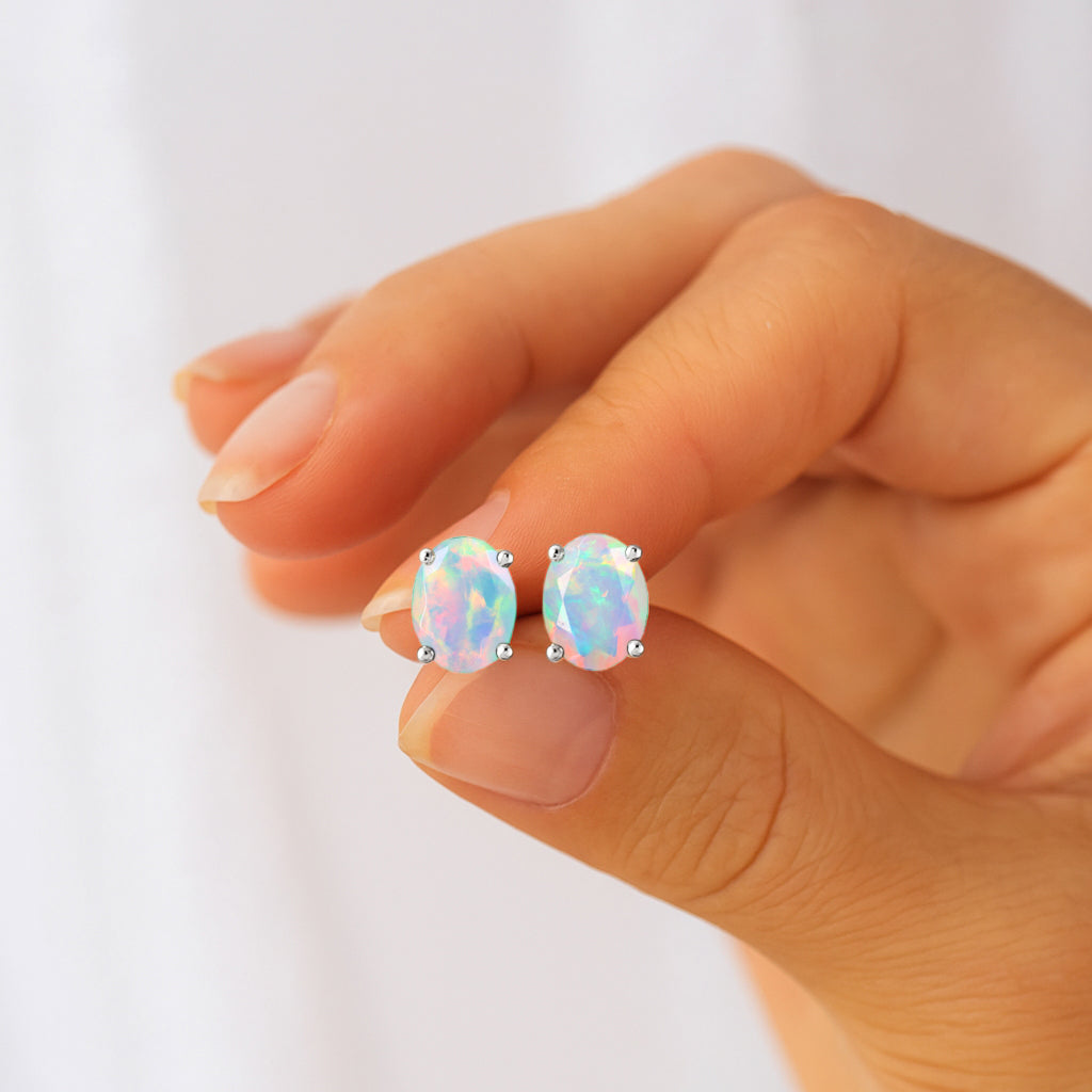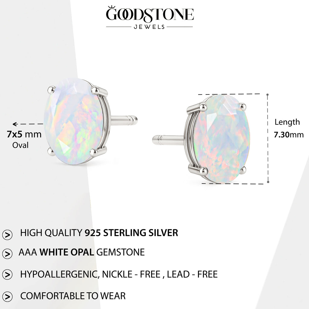White OpalDiscover timeless elegance with our White Opal Oval Stud Earrings, crafted in premium 925 Sterling Silver. Each earring features a smooth 7x5 mm oval opal weighing 0.75 ct, offering a soft, natural glow perfect for any occasion. Designed with a sleek 7.30x5.30 mm profile and a lightweight 0.62 gm build, these studs provide comfort and sophistication in every wear. A beautiful everyday accessory and a meaningful gift for someone special.