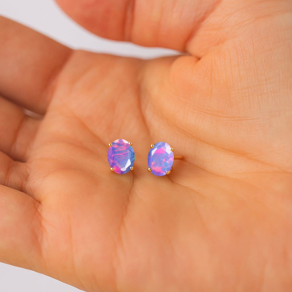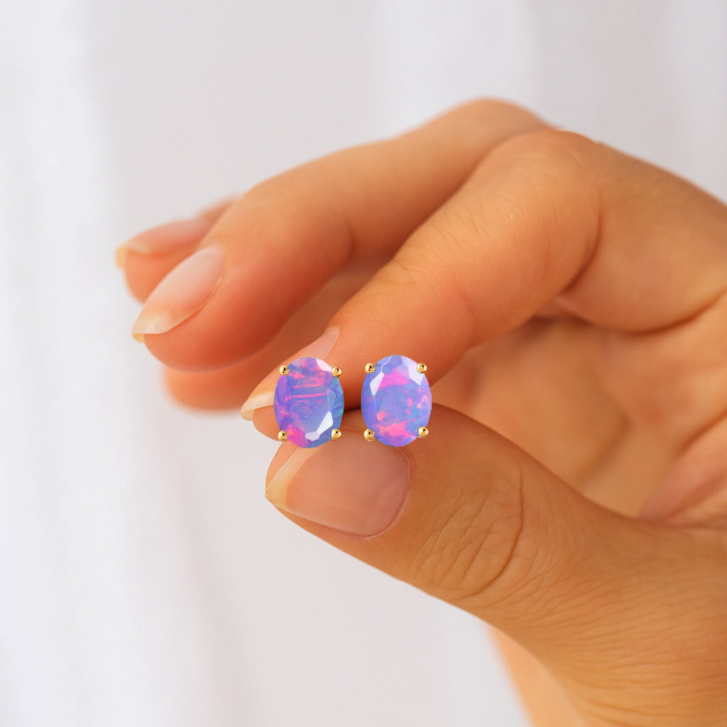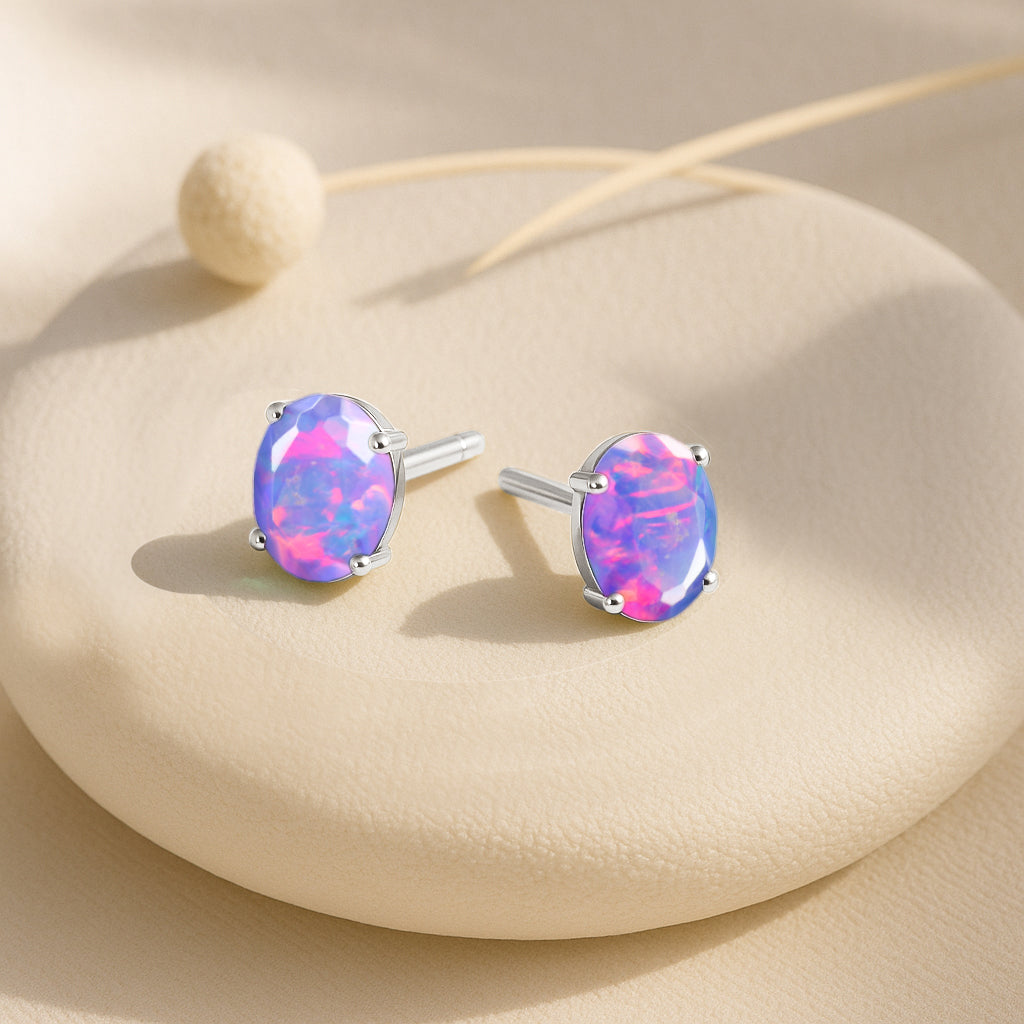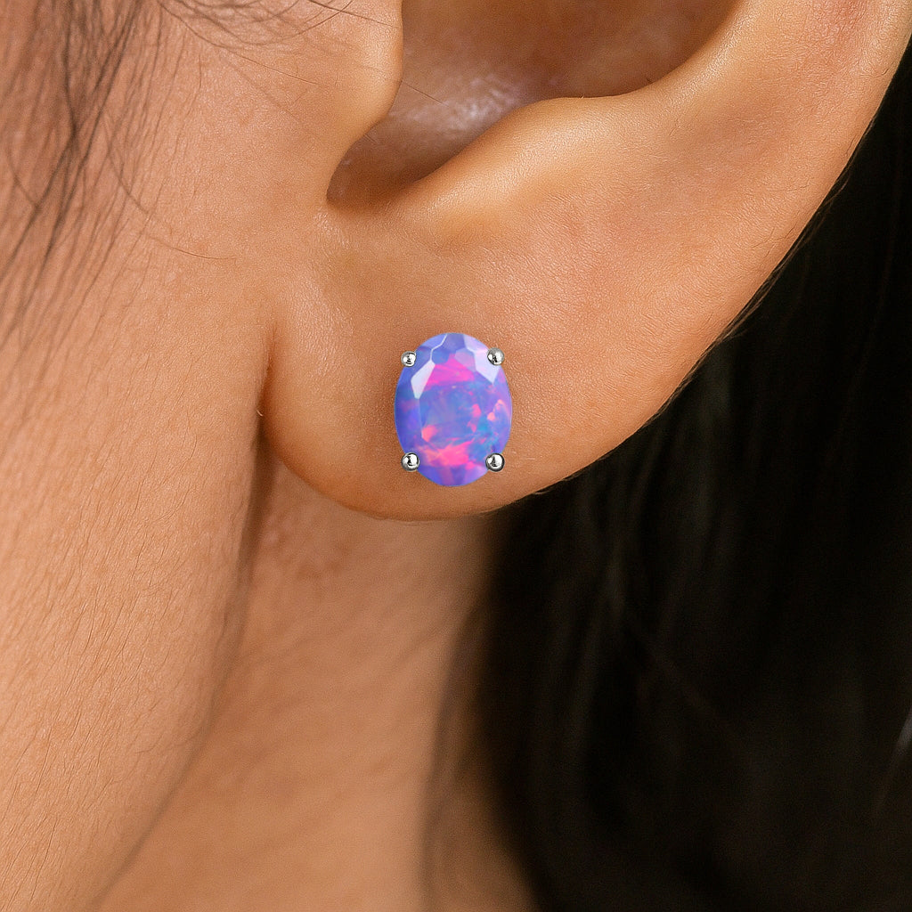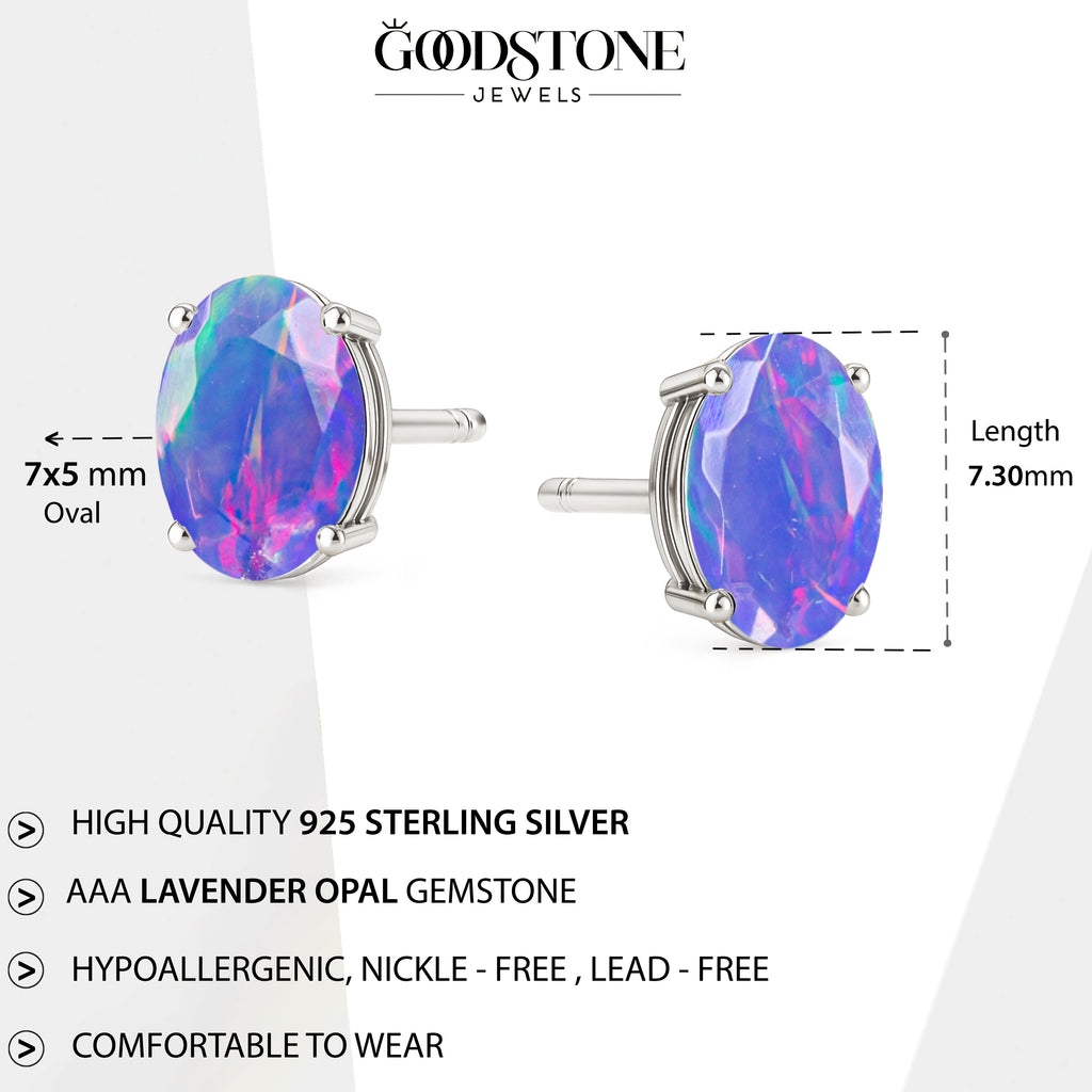 Lavender OpalDiscover timeless elegance with our Lavender Opal Oval Stud Earrings, crafted in premium 925 Sterling Silver. Each earring features a smooth 7x5 mm oval opal weighing 0.75 ct, offering a soft, natural glow perfect for any occasion. Designed with a sleek 7.30x5.30 mm profile and a lightweight 0.62 gm build, these studs provide comfort and sophistication in every wear. A beautiful everyday accessory and a meaningful gift for someone special.
