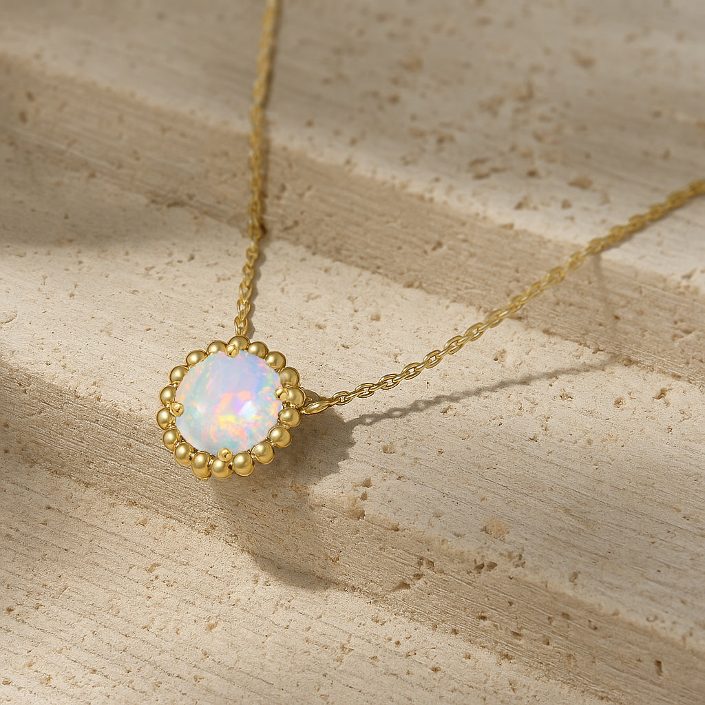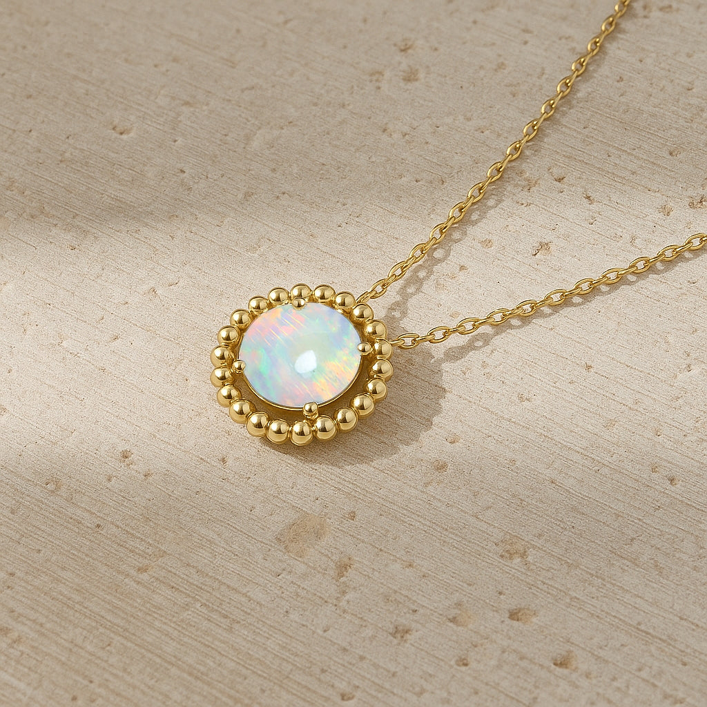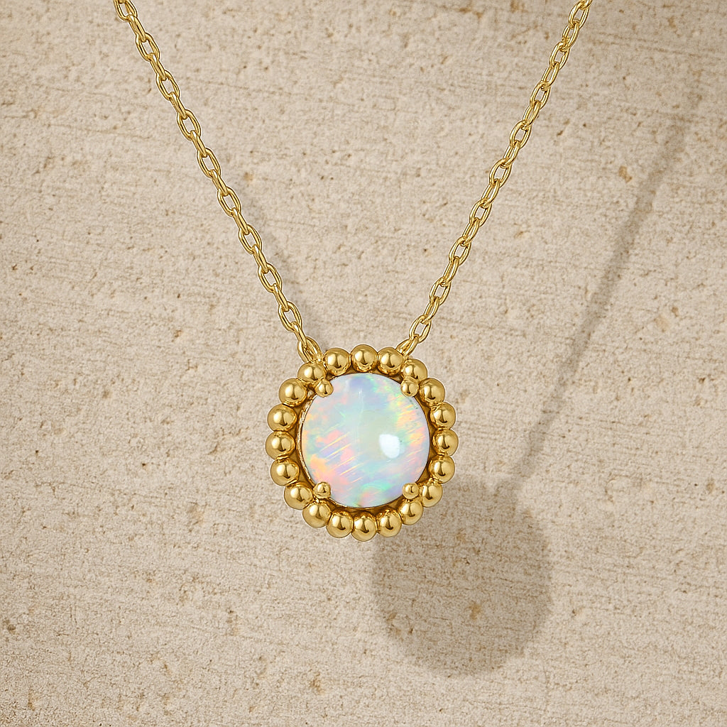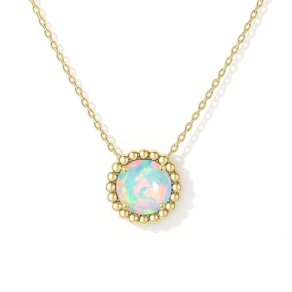 White OpalDiscover timeless elegance with this White Opal Round Solitaire Pendant Necklace, beautifully crafted in 925 sterling silver. The smooth 5 mm round opal (0.50 carat) radiates a soft, enchanting glow, making it perfect for both daily wear and special occasions. Designed with a sleek 7.39x7.40 mm pendant size, it hangs gracefully from a 16"+2" adjustable cable chain secured with a classic lobster clasp. Lightweight at approximately 0.85 gm, this necklace offers effortless comfort while adding a touch of refined luxury. A perfect gift and a stunning addition to any jewelry collection, it brings subtle brilliance to every look.