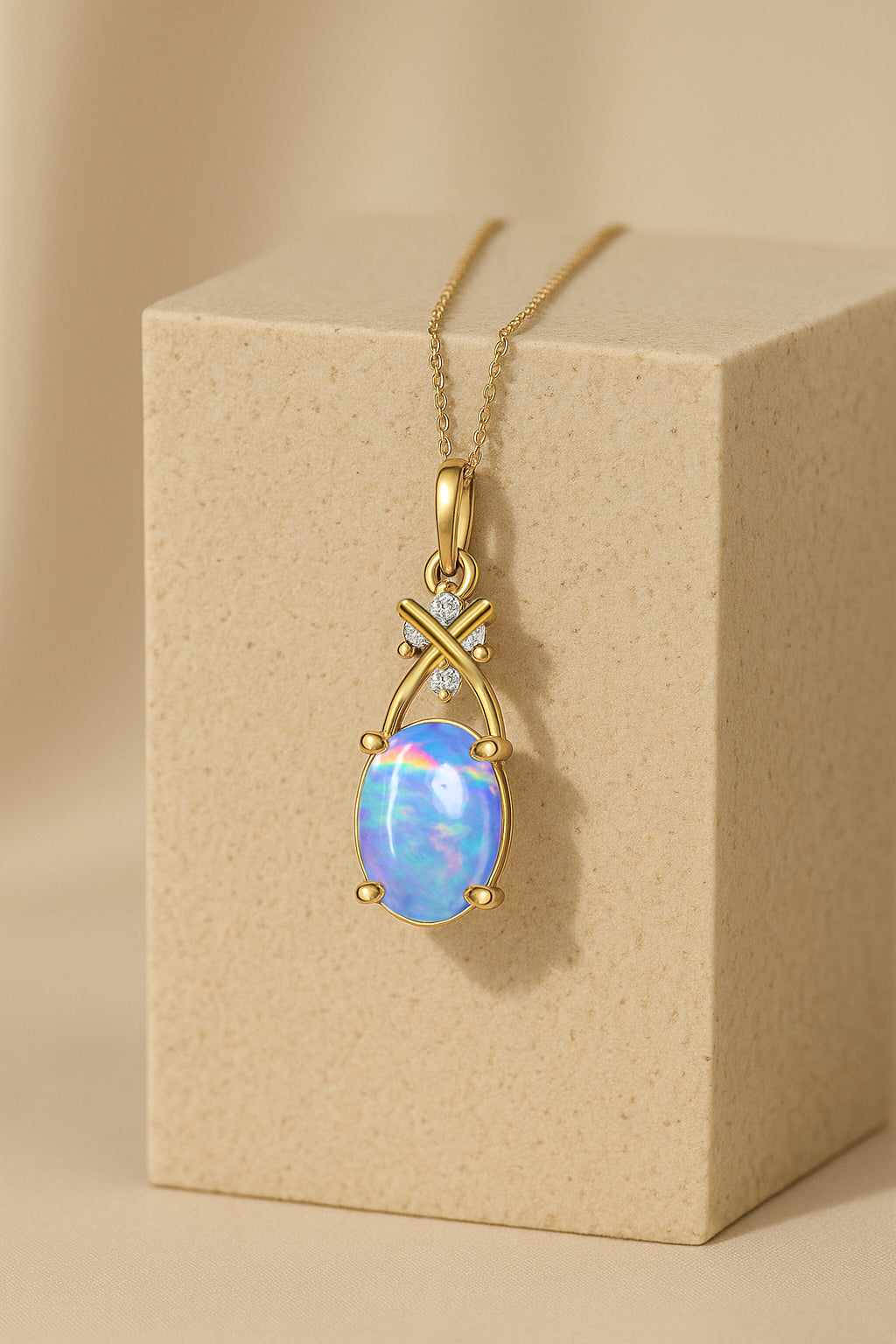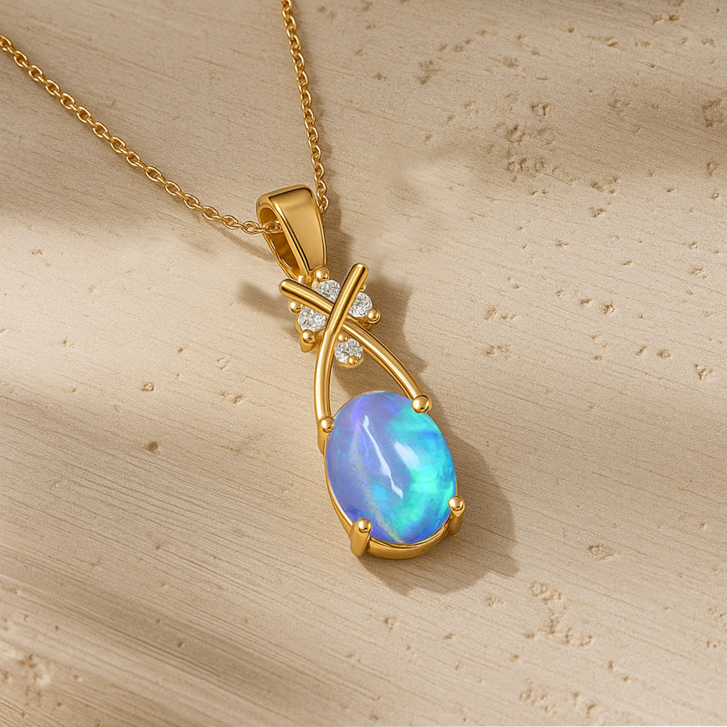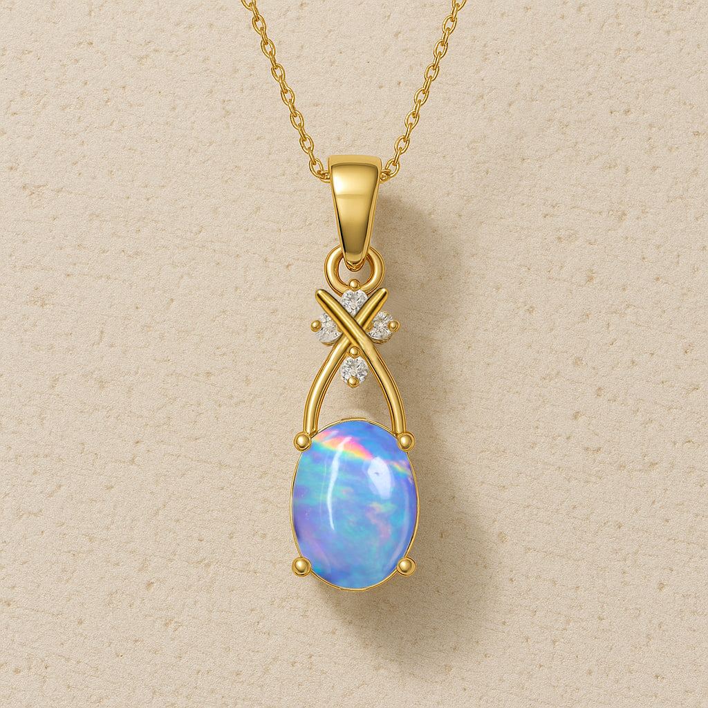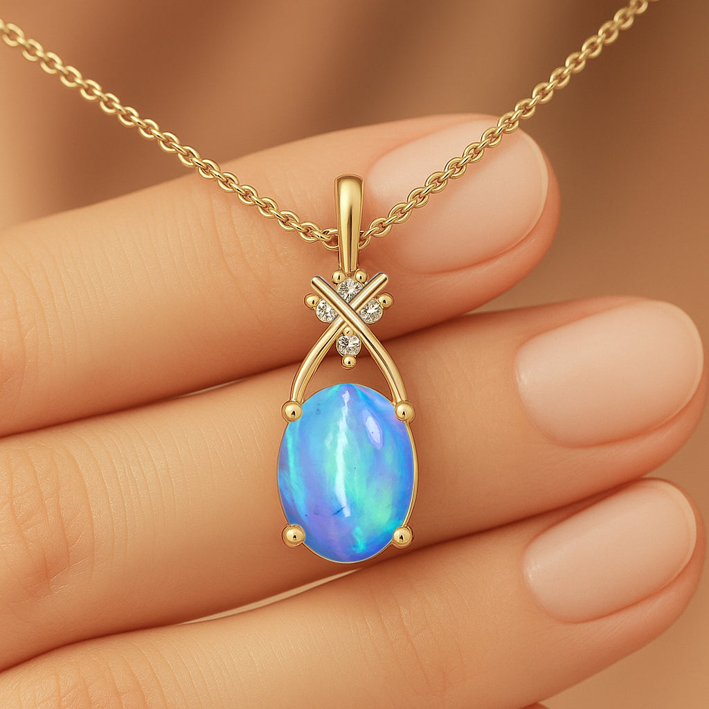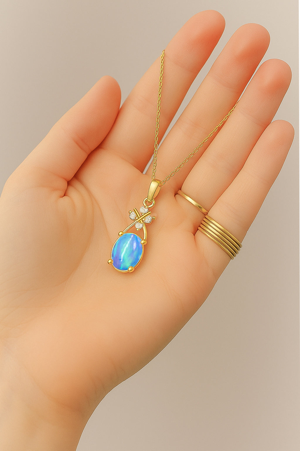 Blue OpalElevate your everyday style with this exquisite Blue Opal Oval Pendant Necklace, expertly crafted in 925 Sterling Silver. Featuring a luminous 9x7 mm smooth oval Opal (1.20 Ct), its natural iridescence creates a captivating play of colors that enhances any look. The elegant pendant measures 20.38 x 7.02 mm and is paired with a refined 16” + 2” adjustable cable chain secured with a lobster clasp for lasting comfort and durability. Lightweight at approximately 1.35 gm, this Opal necklace is perfect for gifting or adding a touch of luxury to your jewelry collection.