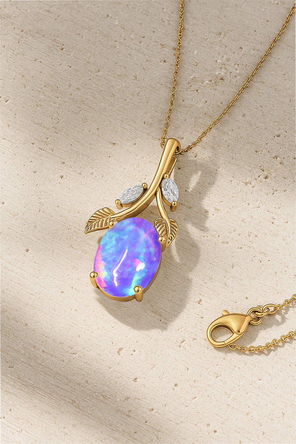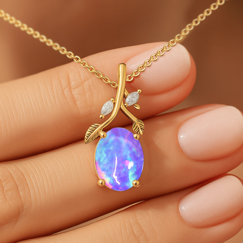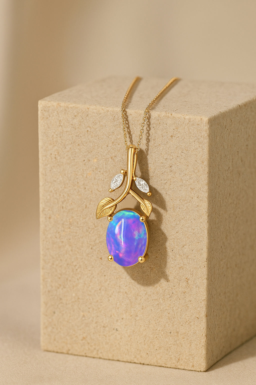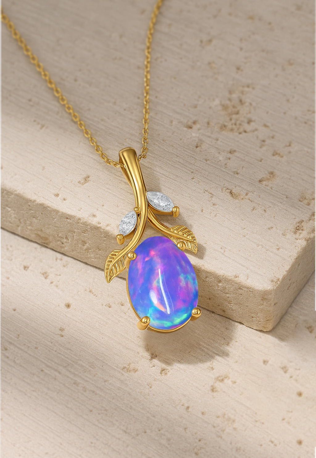 Lavender OpalElevate your everyday elegance with this Oval Stone Leaf-Shaped Pendant Necklace, featuring a radiant 9x7 mm smooth Lavender Opal set in 925 Sterling Silver. The 1.2 carat opal shines beautifully within the delicate leaf-inspired design, measuring 17.96 x 9.05 mm. Paired with a 16” + 2” adjustable cable chain and secure Lobster clasp, this lightweight 1.45 gm pendant offers timeless charm and refined style perfect for gifting or adding a graceful touch to any look.