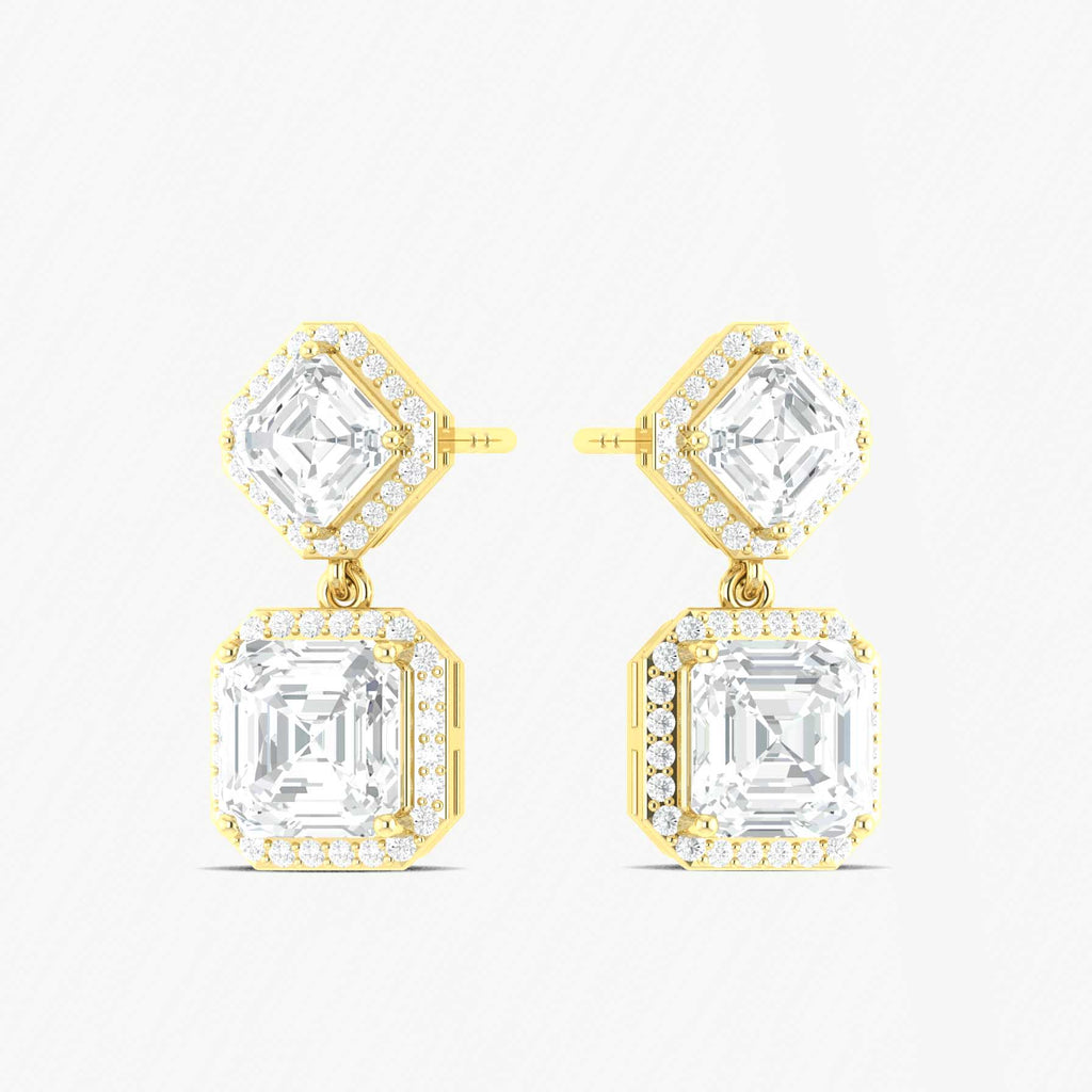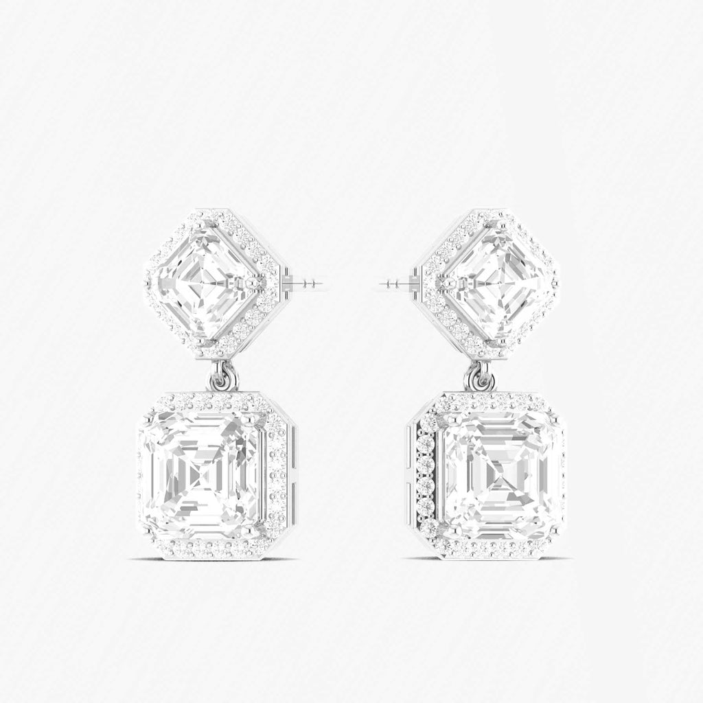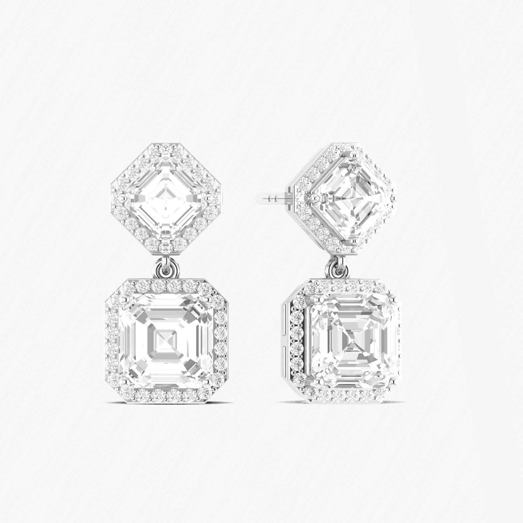 Cubic ZirconiaDazzling cubic zirconia 7x5mm octagon halo drop earrings crafted in 925 sterling silver, featuring 4ct of sparkling CZ stones with a halo setting. Measuring 20.9x10mm with secure push-back closure. Perfect for parties, special occasions, or adding timeless sparkle to any outfit.