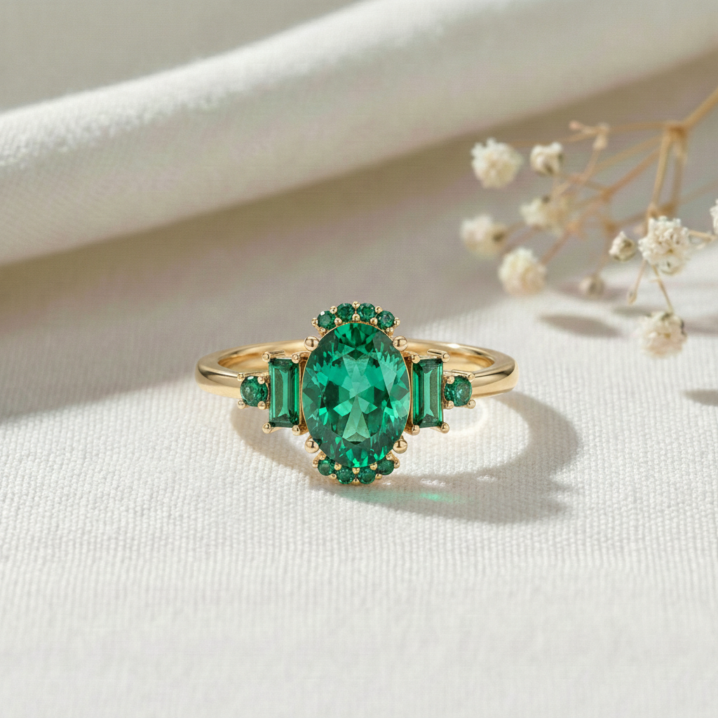 Emerald Engagement Ring | Luxury Bridal Ring | Unique Engagement Ring for Women