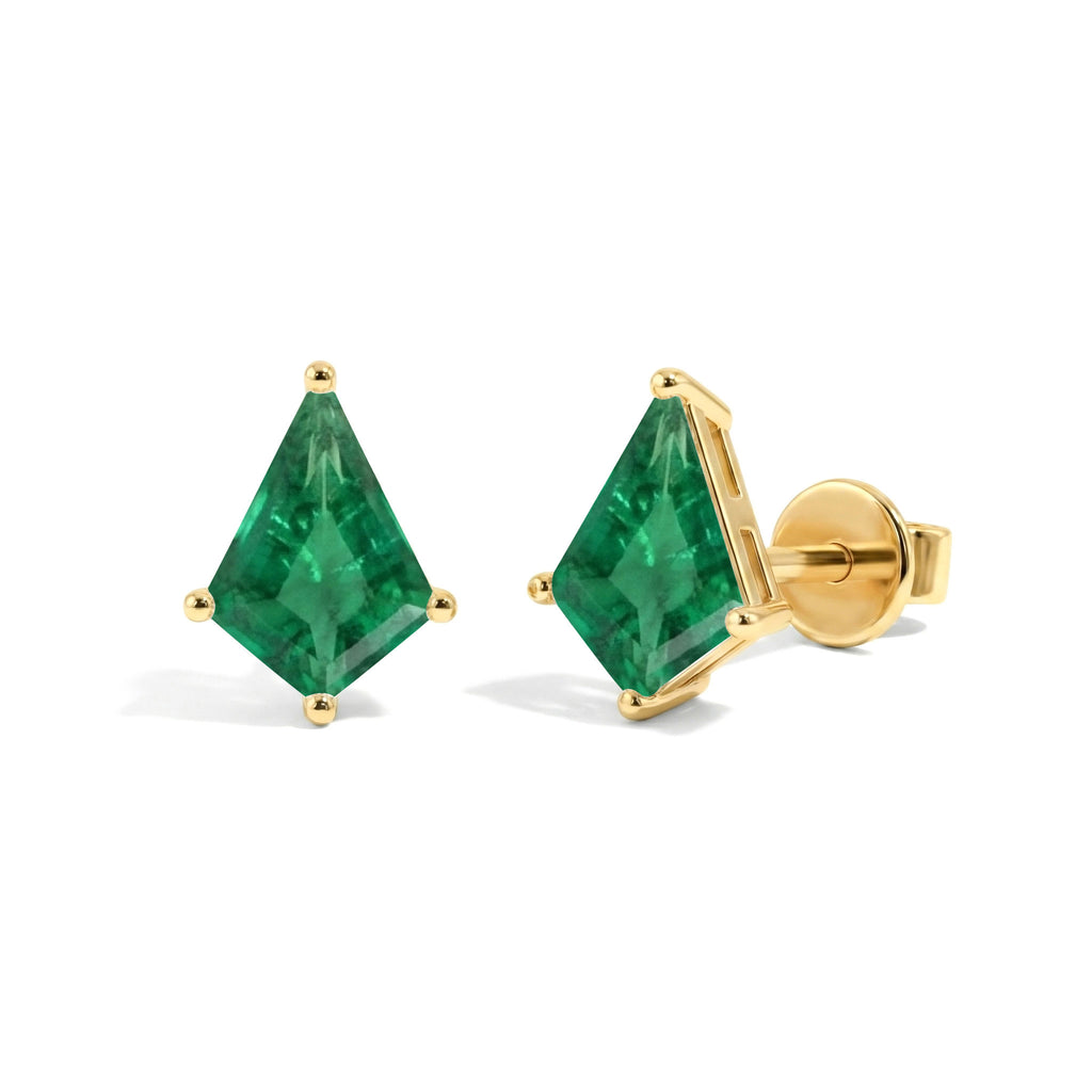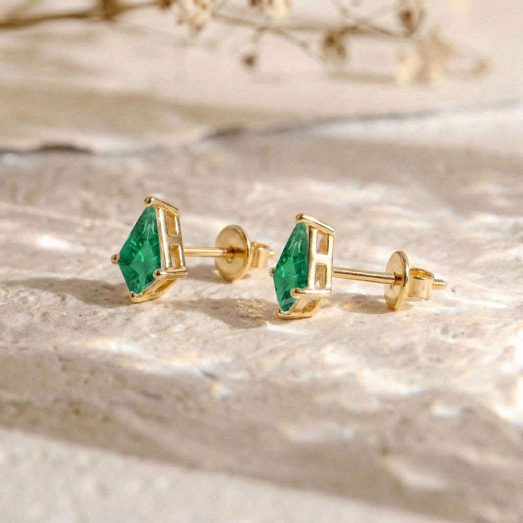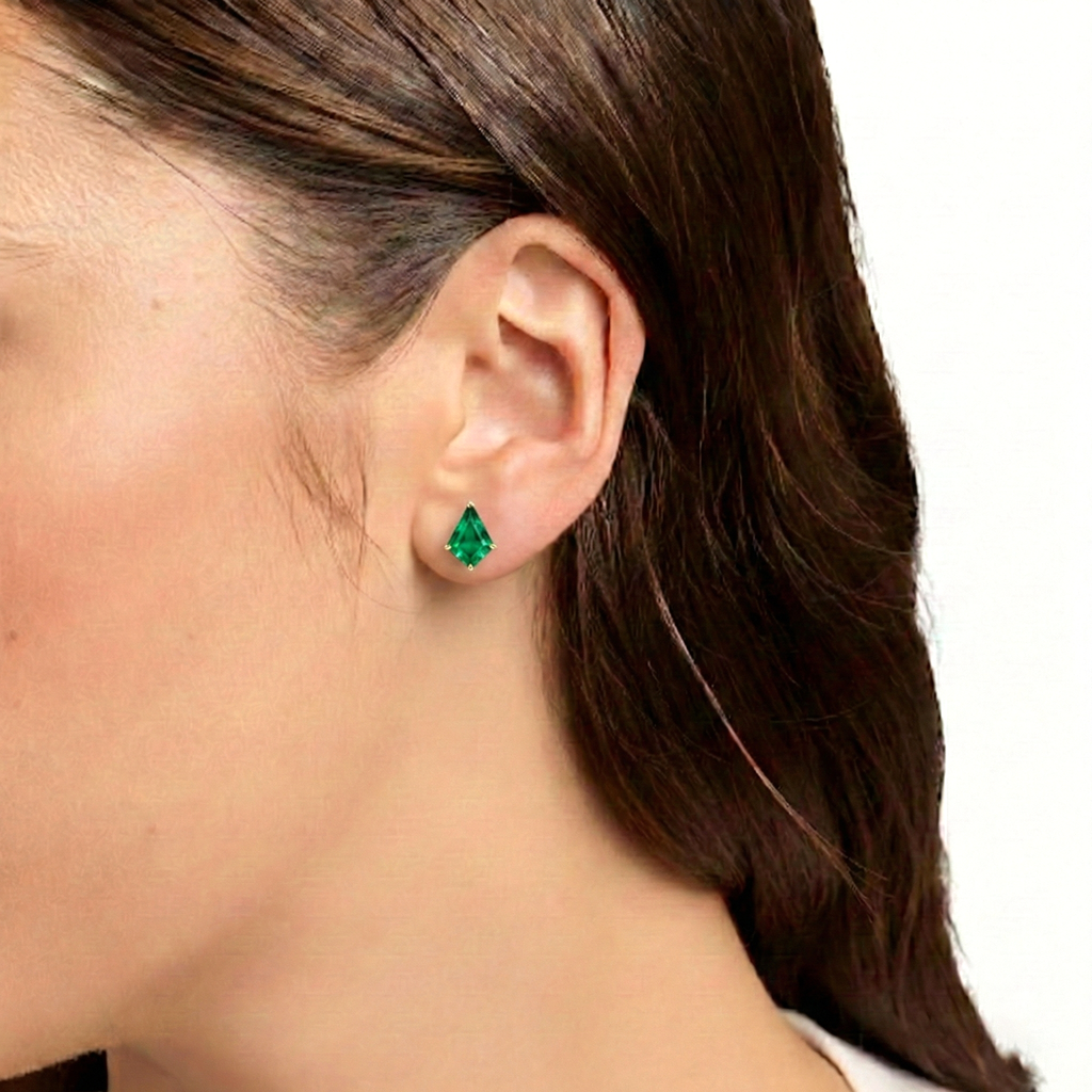 Emerald Kite Stud Earrings in 925 Sterling Silver 7x5 MM 1.50ct