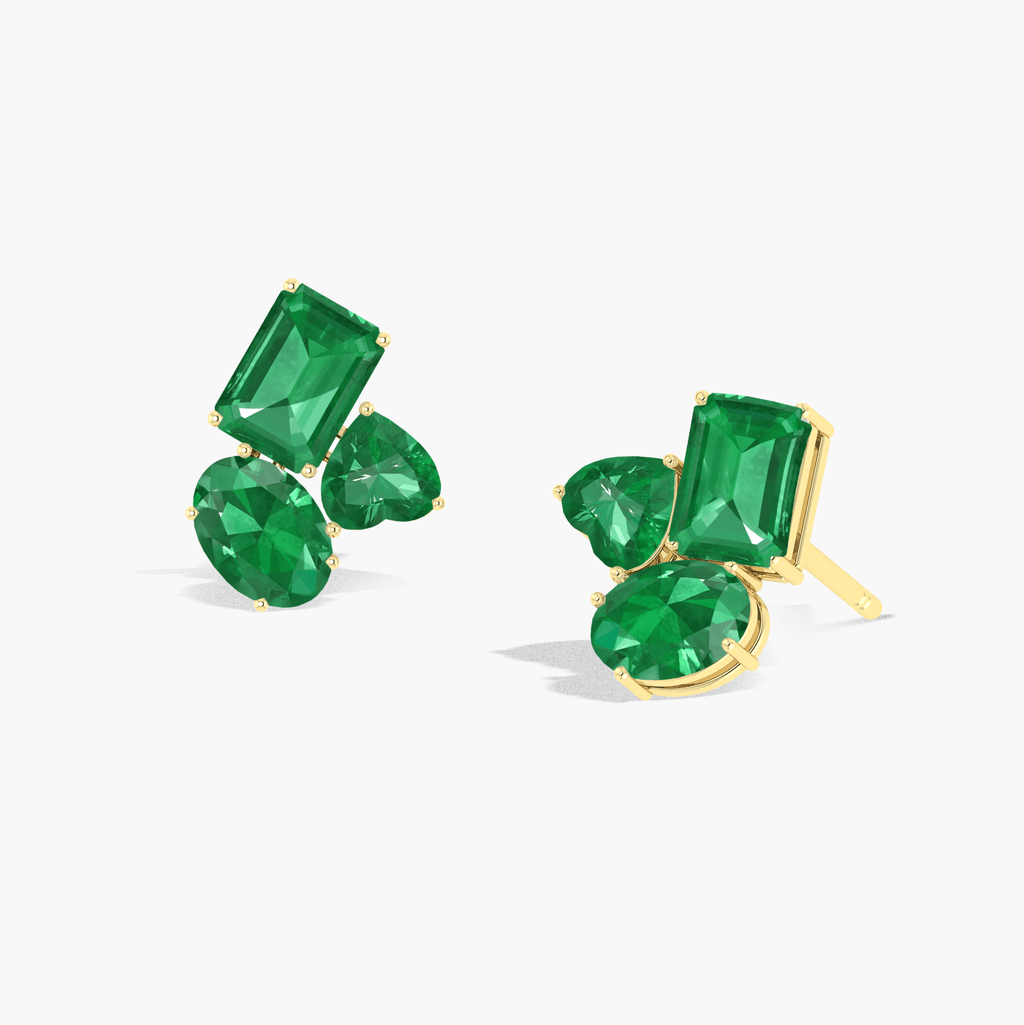 EmeraldIntroducing the Emerald Multi Stone Stud Earrings! This beautiful earring features three different shape gemstone of stunning emerald. Wear it to add a touch of elegance and love to any outfit. Perfect for special occasions or everyday wear, this earring is sure to dazzle and delight.
