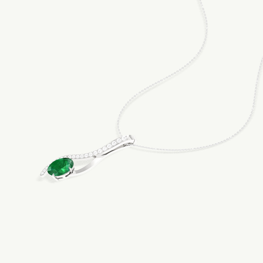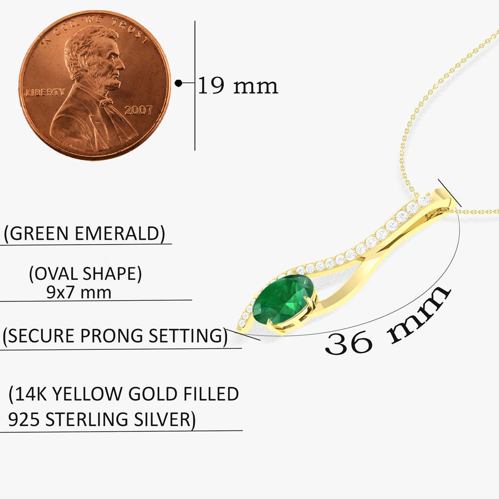 EmeraldThis Emerald Oval Swirl Pendant Necklace is crafted in genuine 925 Sterling Silver, featuring a single 9×7 mm oval emerald stone weighing 1.4 carats. The pendant measures 36 × 9.2 mm in a graceful swirl design that adds elegance and sophistication. It hangs from a 16” cable chain with a 2” extender and secure lobster clasp. Weighing 2.9 grams, this necklace is perfect for everyday elegance, special occasions, or gifting to someone special.