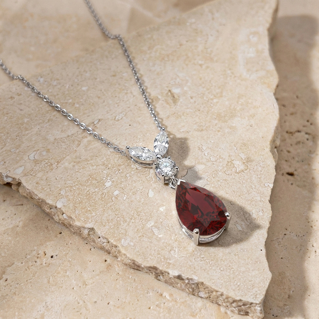 This Natural Garnet Pear Teardrop Pendant Necklace is crafted in 925 sterling silver and features a 1.70 CT faceted pear-shaped Garnet (10x7 mm). The pendant measures 21.06 x 7.31 mm and weighs approximately 1.70 g. It comes with a 16” + 2” adjustable sterling silver cable chain and a secure lobster clasp. A deep red gemstone necklace perfect for everyday elegance or special occasions.