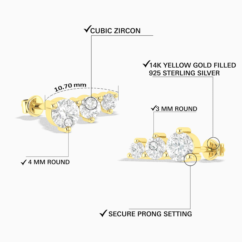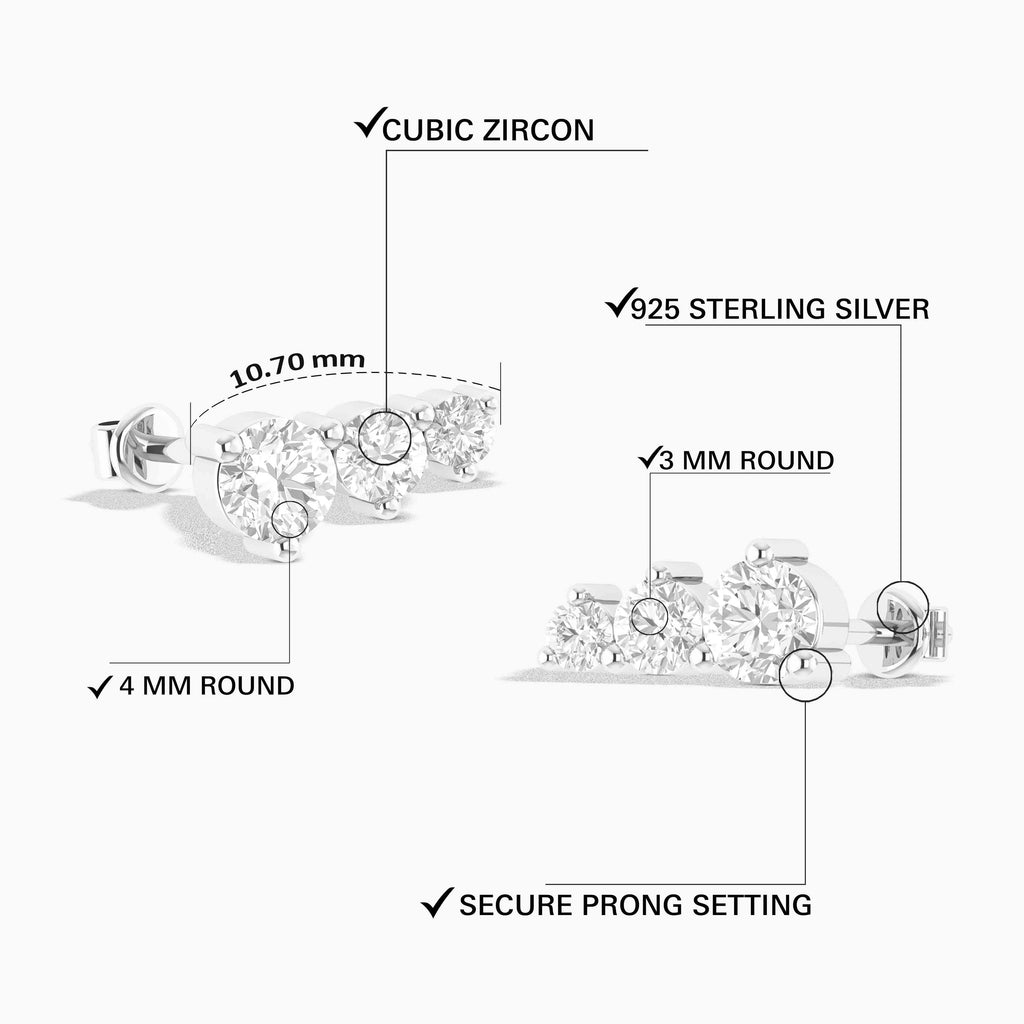 Cubic ZirconiaSparkling cubic zirconia round stud earrings crafted in 925 sterling silver, featuring 4mm, 3mm, and 2mm CZ stones. Total 1.5ct weight with a secure push-back closure. Lightweight and dazzling, perfect for everyday wear, parties, or adding timeless sparkle to any look.