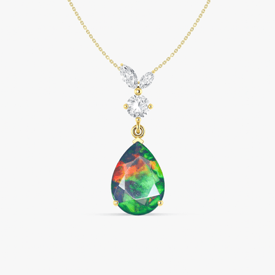 Fire Black Opal Pear Gemstone Pendant