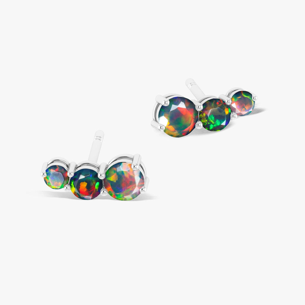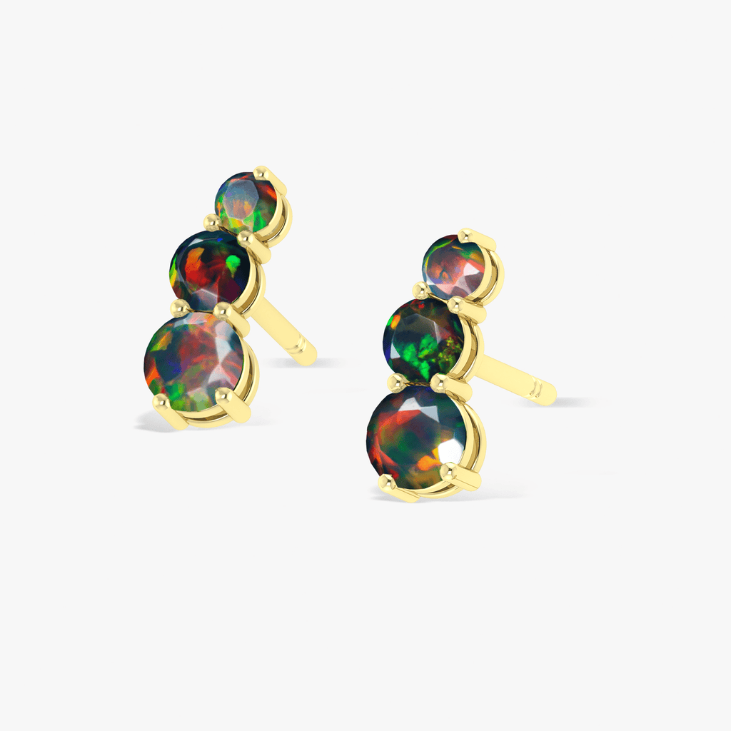 Black OpalIntroducing the Opal Three Stone Stud Earrings! This beautiful earring features a round of stunning opal gemstone. Wear it to add a touch of elegance and love to any outfit. Perfect for special occasions or everyday wear, this earring is sure to dazzle and delight.