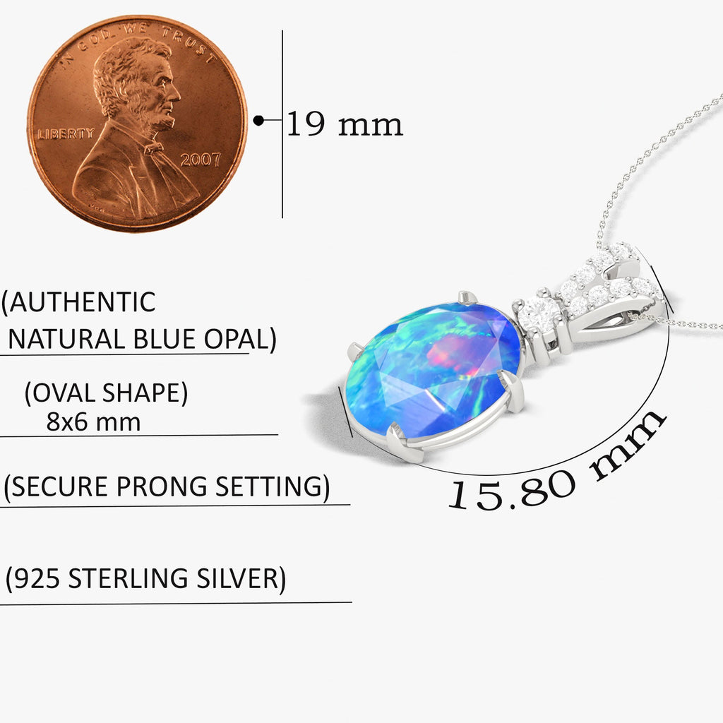 Blue OpalIntroducing the Blue Opal Stone Charm Pendant! This beautiful necklace features a oval gemstone of stunning Blue opal. Wear it to add a touch of elegance and love to any outfit. Perfect for special occasions or everyday wear, this pendant is sure to dazzle and delight.