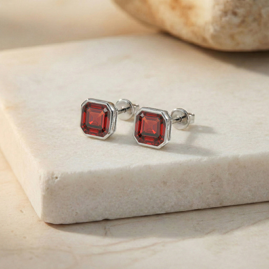 Garnet Octagon Stud Earring in 925 Sterling Silver 6MM 2ct.