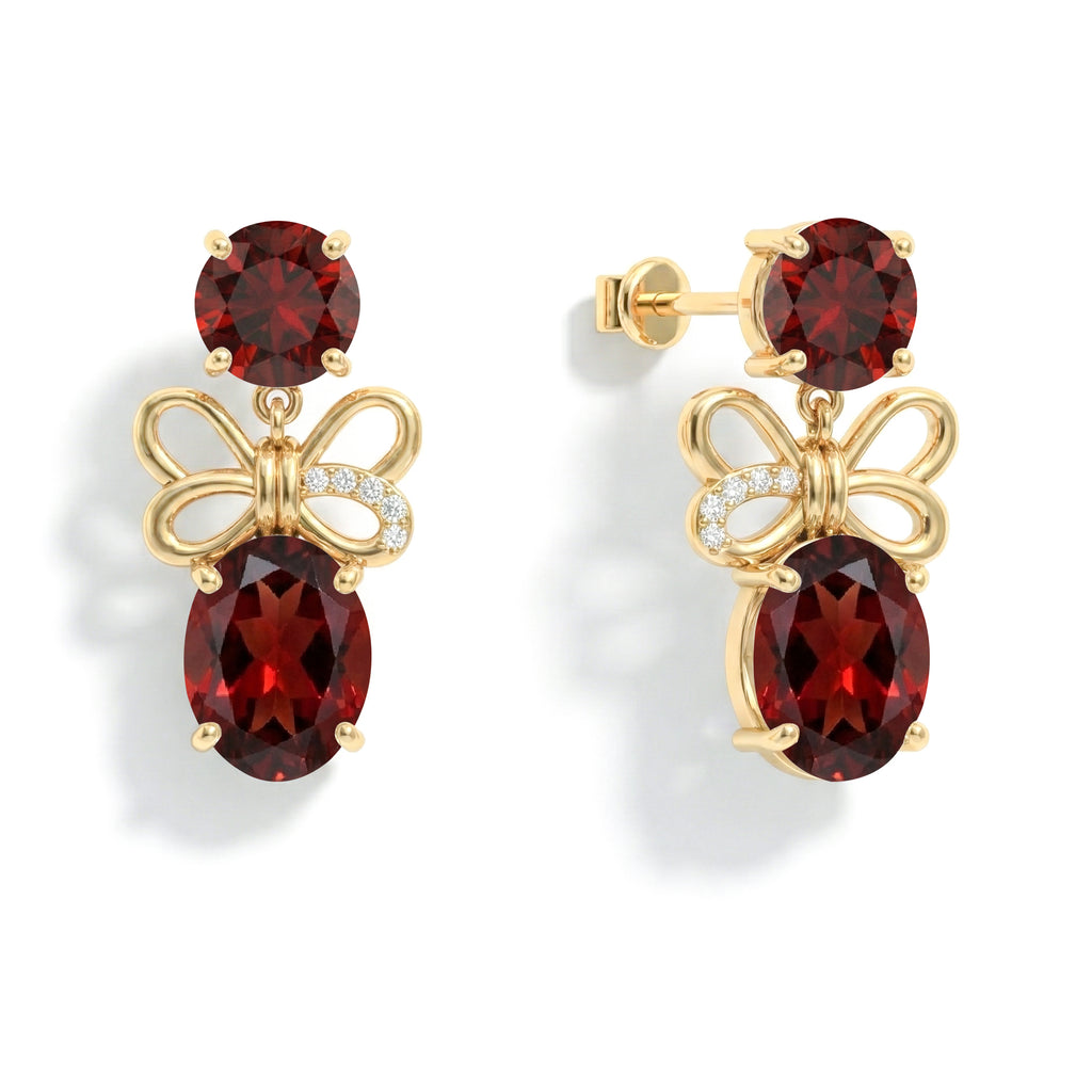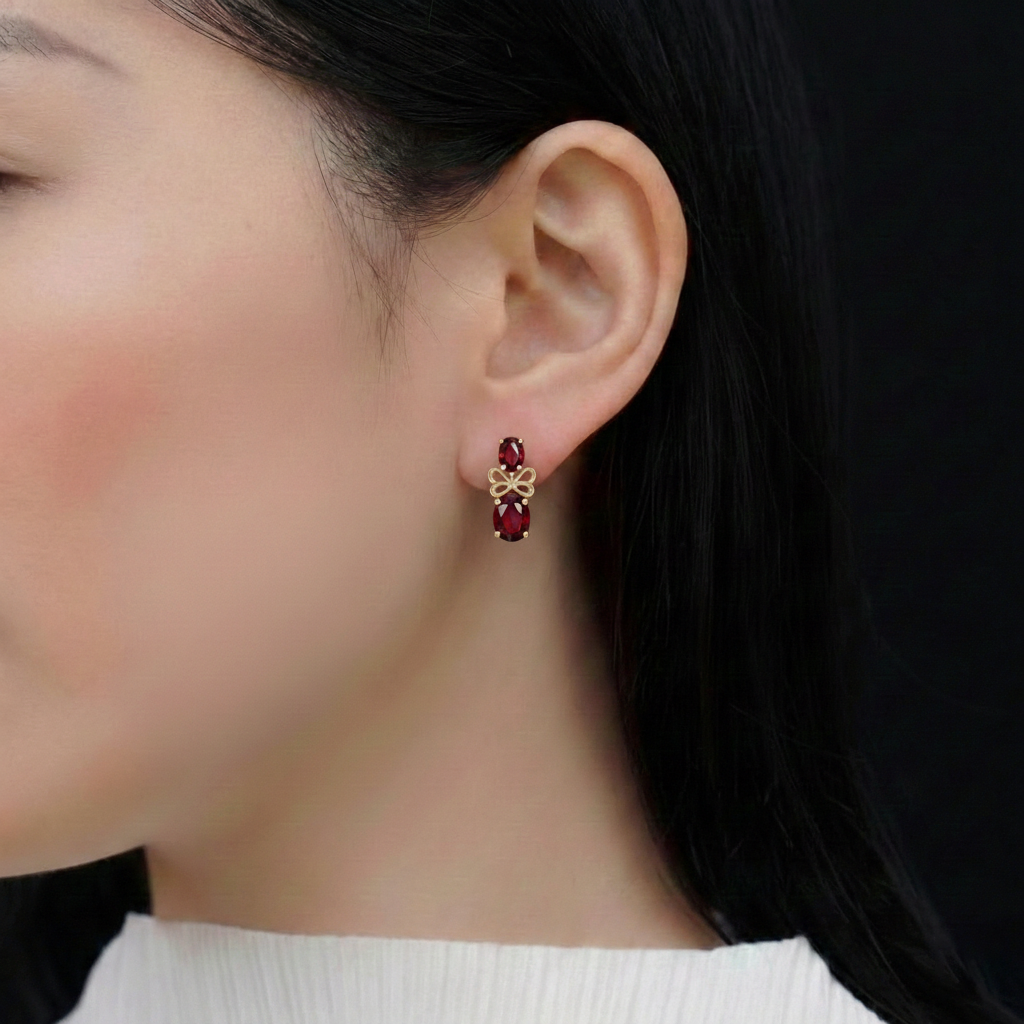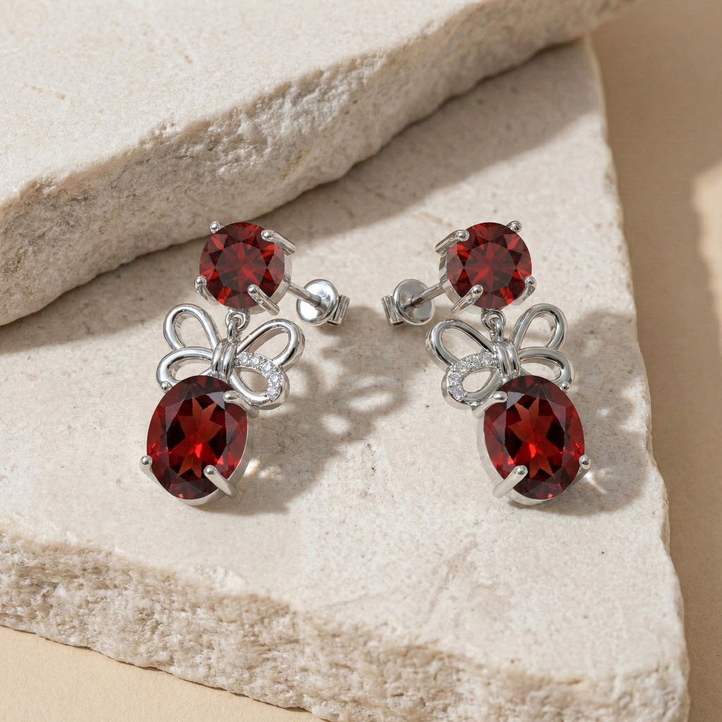 Garnet Round and Oval Stud Earring in 925 Sterling Silver 6 MM 5-ct.