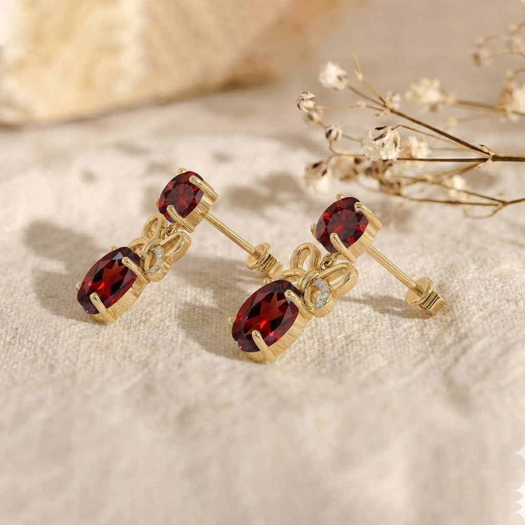 Add a bold and elegant touch to your jewelry collection with the Garnet Round and Oval Stud Earring in 925 Sterling Silver. These stylish earrings feature beautifully cut facet garnet stones including 6 MM round stones (2) and 9x7 MM oval stones (2) with a total weight of 5 carats approx. The deep red sparkle of garnet creates a rich and timeless look. Crafted in high quality 925 sterling silver, the earrings measure 22.23 x 11.03 MM and weigh 4.90 GM, offering a balanced design that is comfortable for daily wear as well as special occasions.