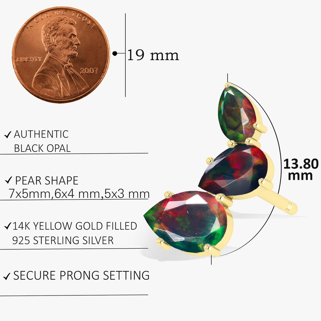 Black OpalIntroducing the Opal Horn Style Stud Earrings! This beautiful earring features three pear of stunning opal gemstone. Wear it to add a touch of elegance and love to any outfit. Perfect for special occasions or everyday wear, this earring is sure to dazzle and delight.
