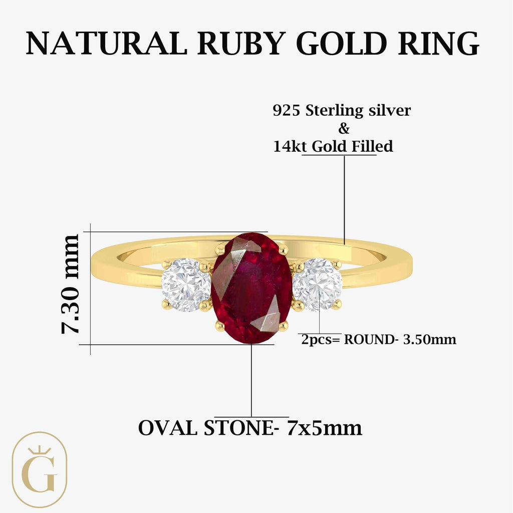 RubyThis stunning ring showcases a vibrant oval-shaped ruby, the gemstone of love and passion. Sparkling round CZ diamonds add extra brilliance to this elegant design. Crafted from 925 sterling silver, it's a timeless piece perfect for special occasions or adding a touch of luxury to everyday wear.