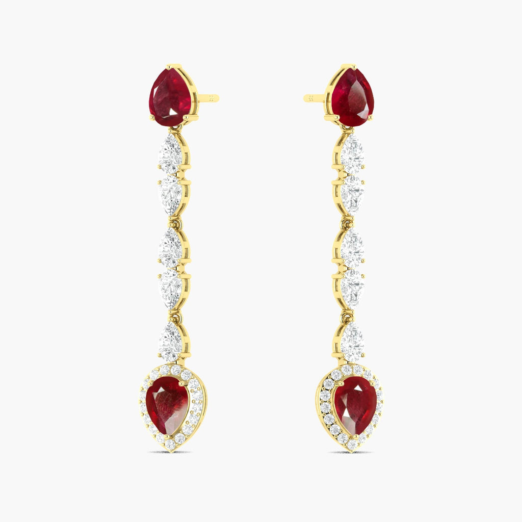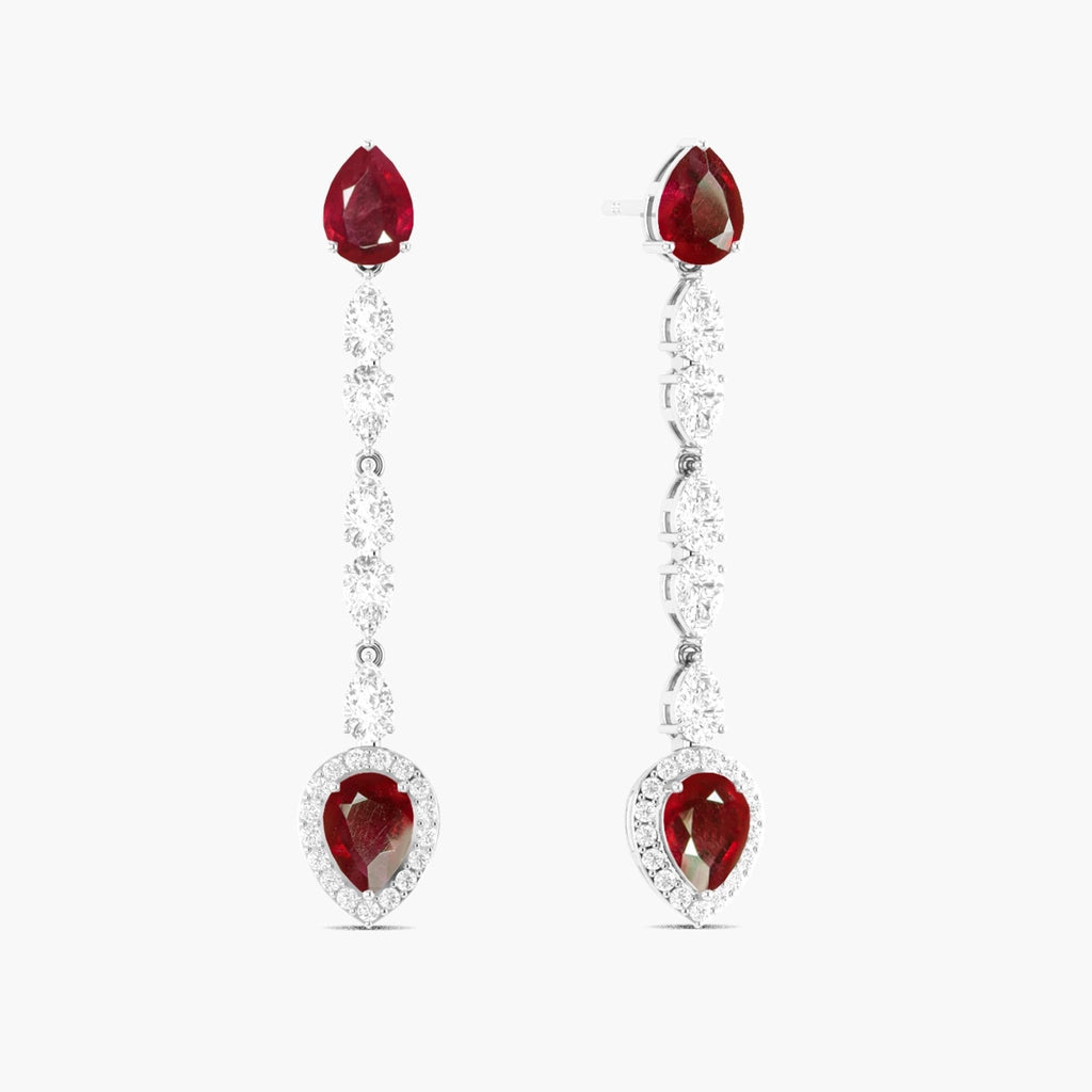 RubyIntroducing the Ruby Long Drop Earrings! This beautiful earring features pear of stunning rubies and zircon gemstone. Wear it to add a touch of elegance and love to any outfit. Perfect for special occasions or everyday wear, this earring is sure to dazzle and delight.