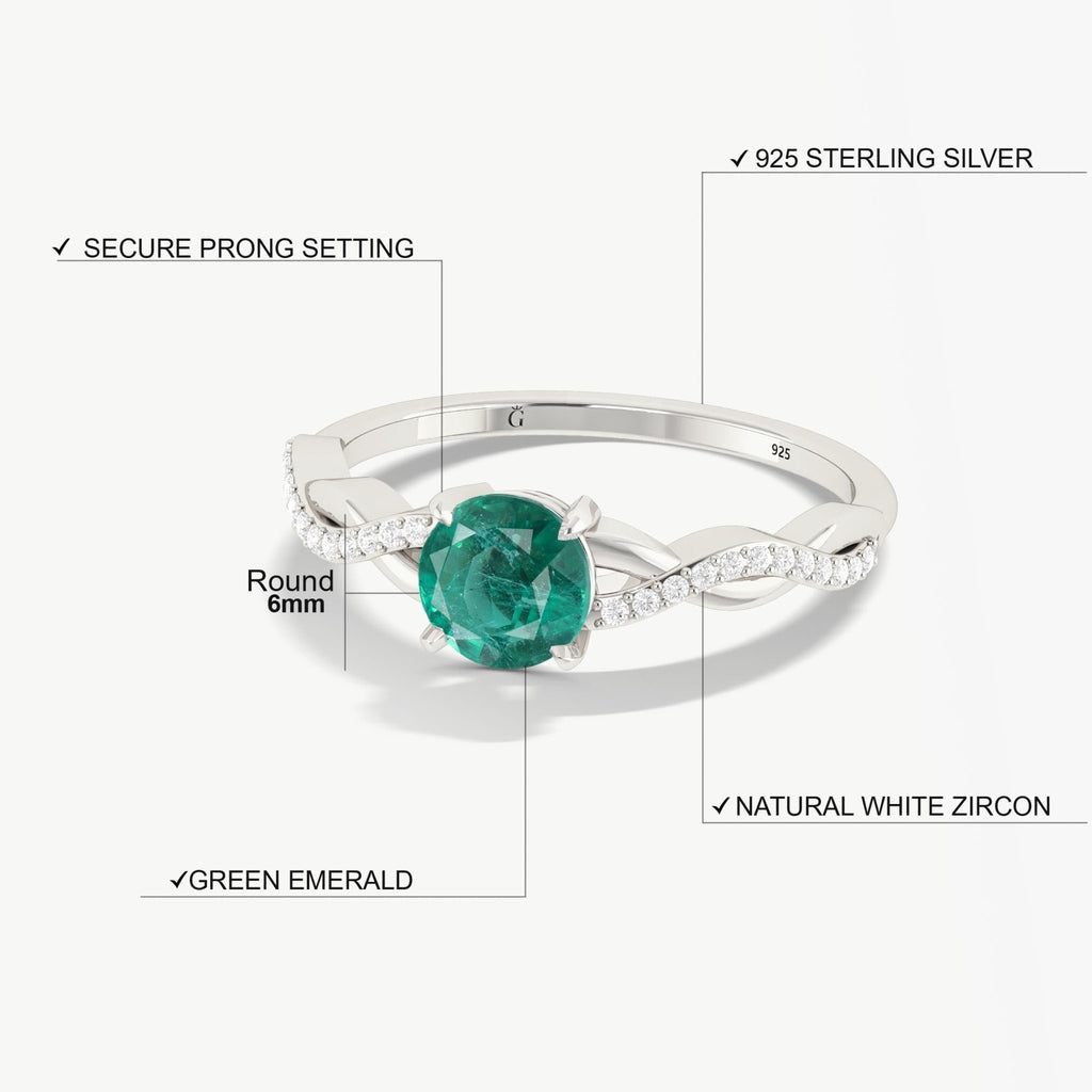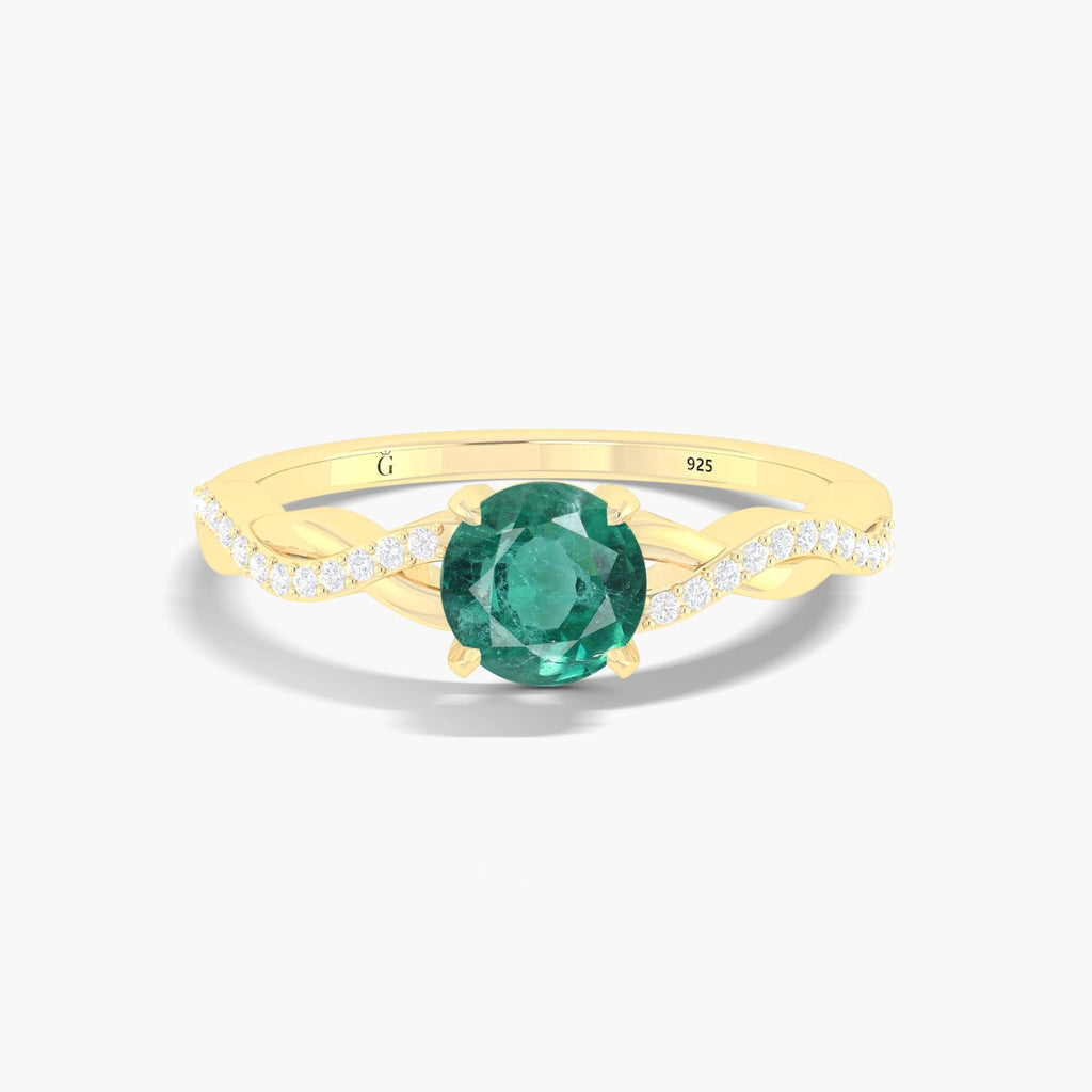 This exquisite Green Emerald Ring is an ideal choice for a meaningful gift. The centerpiece is a captivating 6mm round emerald stone that radiates elegance, encircled by sparkling white zircon accents for added brilliance. Crafted with 18k gold vermeil over solid 925 sterling silver, this ring offers both luxury and durability, making it a timeless accessory. The deep green hue of the emerald symbolizes growth, harmony, and renewal, while the classic gold setting enhances its rich color.