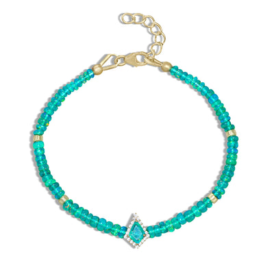 Green fire Ethiopian opal beaded with kite charm bracelet
