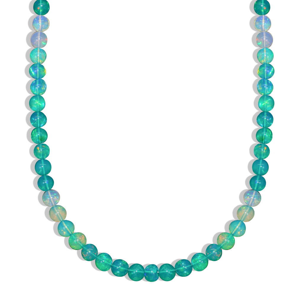 Green OpalShine bright with this elegant Green Opal Necklace, handcrafted with AAA natural shaded green opal beads (5mm) and finished with 14K gold plating.
