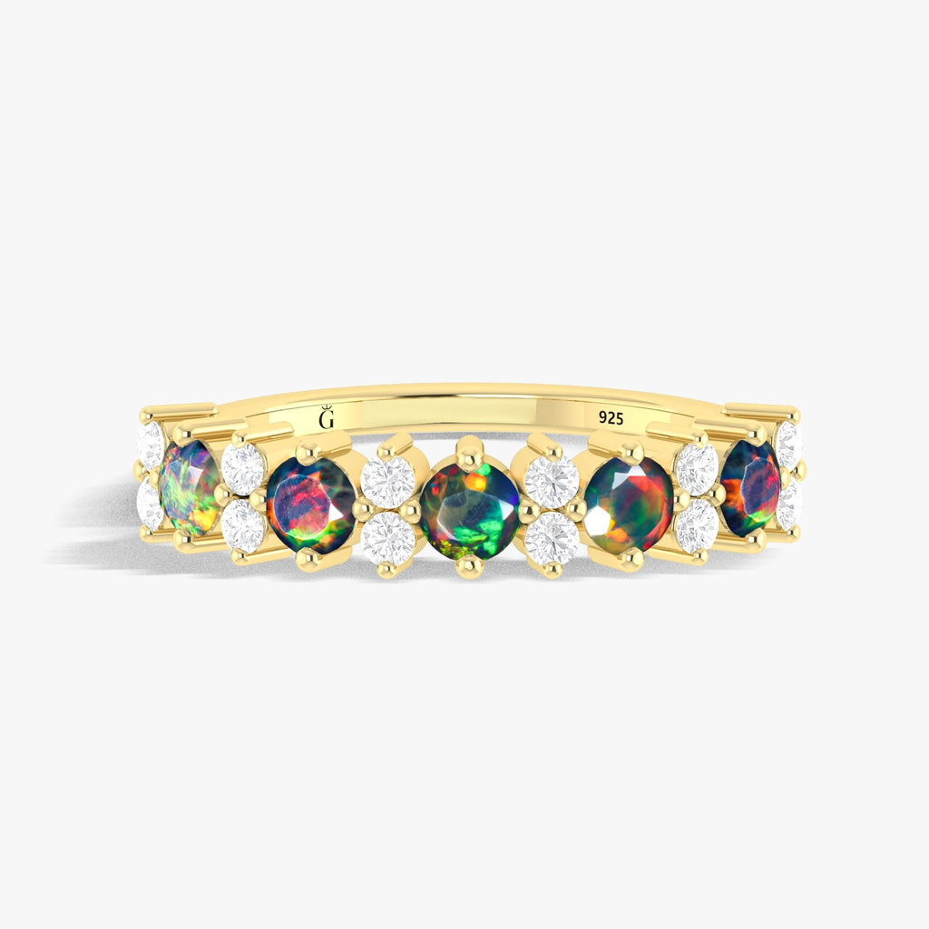 Half Eternity Ring with Natural Black Opal and White Zircon