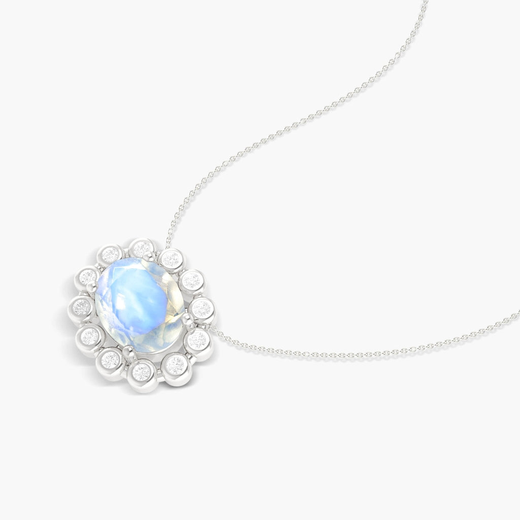 MoonstoneGOODSTONE JEWELS Halo Chain Pendant Necklace, a stunning piece crafted for the modern woman who values elegance and quality. At the heart of this necklace lies a mesmerizing natural moonstone in a classic 9x7 mm oval cut, weighing 1.2 carats. This captivating gemstone shimmers with depth and mystery, set in 925 sterling silver and finished with yellow gold fill for a warm, luxurious glow. Whether you're dressing up for a special evening or enhancing your everyday style, this necklace makes a graceful statement. The 16-inch cable chain with a 2-inch extender offers versatile styling options and a comfortable fit for all necklines. With a total weight of just 3.10 grams, it’s light enough for daily wear yet durable enough to last for years.