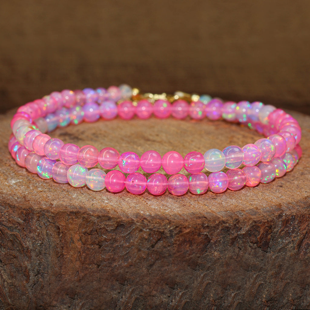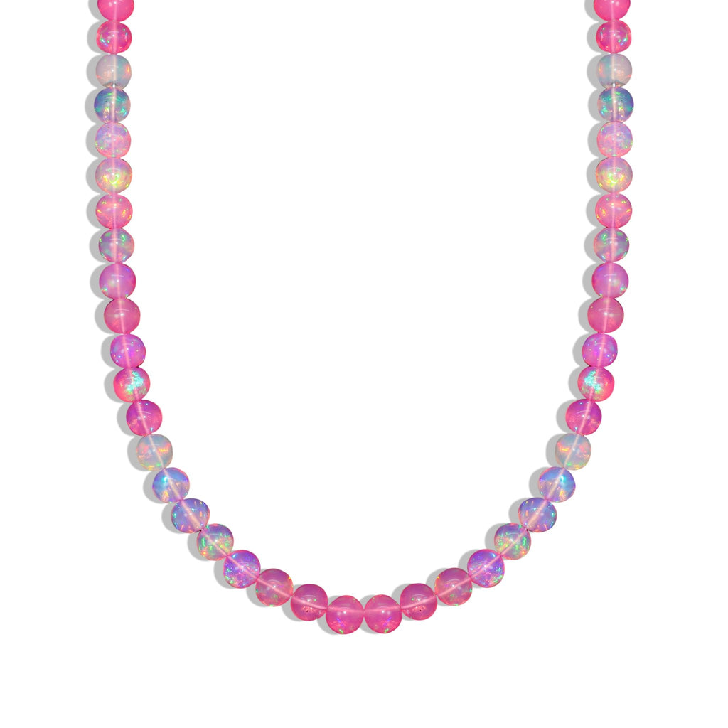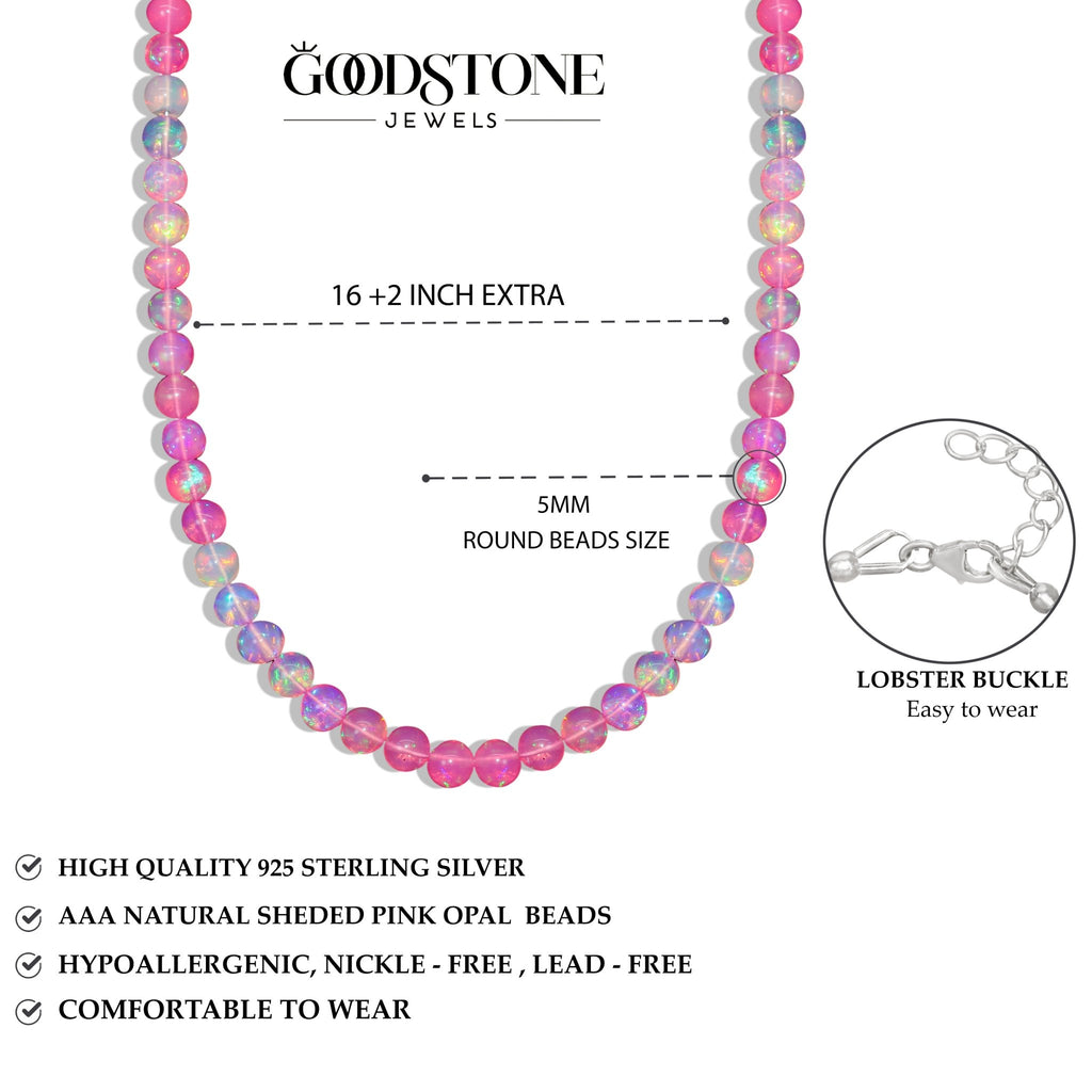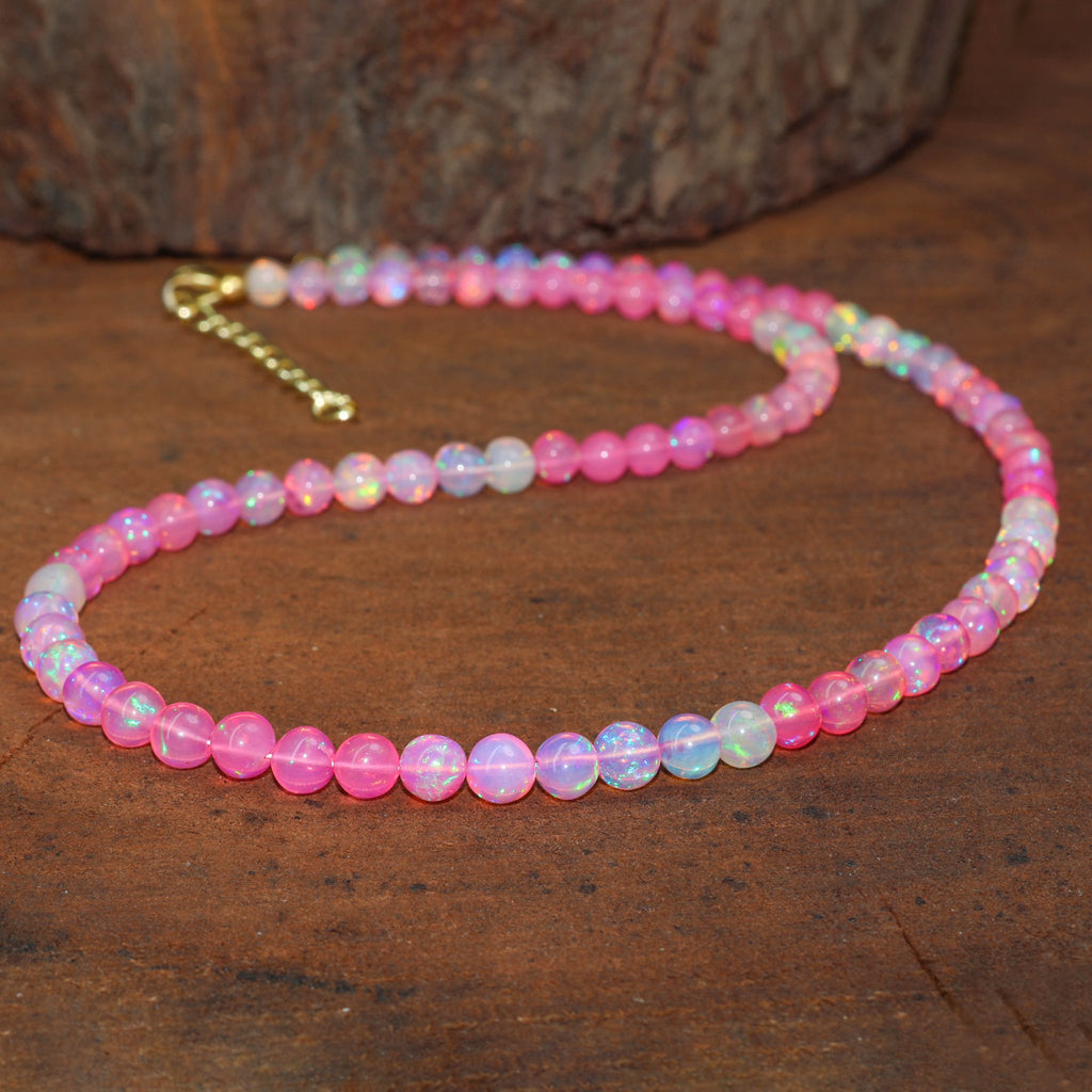 Pink OpalShine bright with this elegant Pink Opal Necklace, handcrafted with AAA natural shaded pink opal beads (5mm) and finished with 14K gold plating.