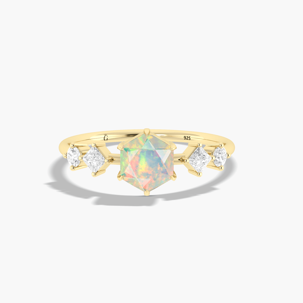 White OpalNatural White Opal Designer Ring for women. Expertly handcrafted in 925 Sterling Silver, this ring features a stunning 6MM Hexagon-Cut White Opal, a rare gemstone known for its fiery brilliance and deep cosmic charm. The unique hexagon facet reflects light from every angle, making this ring a captivating choice for both everyday wear and special occasions. Whether you're shopping for an engagement ring, anniversary gift, promise ring, or birthday present, this meaningful piece is designed to impress.