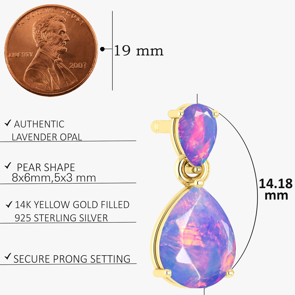 Lavender OpalIntroducing the Lavender Opal Stud and Drop Earrings! This beautiful earring features pear of stunning opal gemstone. Wear it to add a touch of elegance and love to any outfit. Perfect for special occasions or everyday wear, this earring is sure to dazzle and delight.