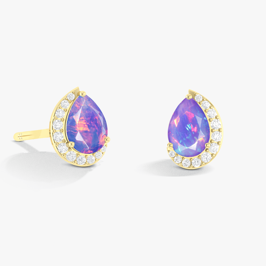 Lavender OpalIntroducing the Pear Opal Stud Earrings! This beautiful earring features pear of stunning opal and zircon gemstone. Wear it to add a touch of elegance and love to any outfit. Perfect for special occasions or everyday wear, this earring is sure to dazzle and delight.