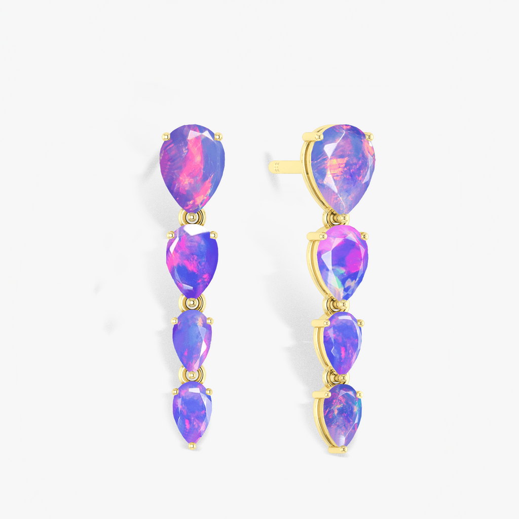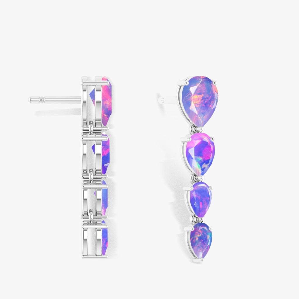 Lavender OpalIntroducing the Lavender Opal Drop Earring! This beautiful earring features a pear gemstone of stunning lavender opal. Wear it to add a touch of elegance and love to any outfit. Perfect for special occasions or everyday wear, this earring is sure to dazzle and delight.