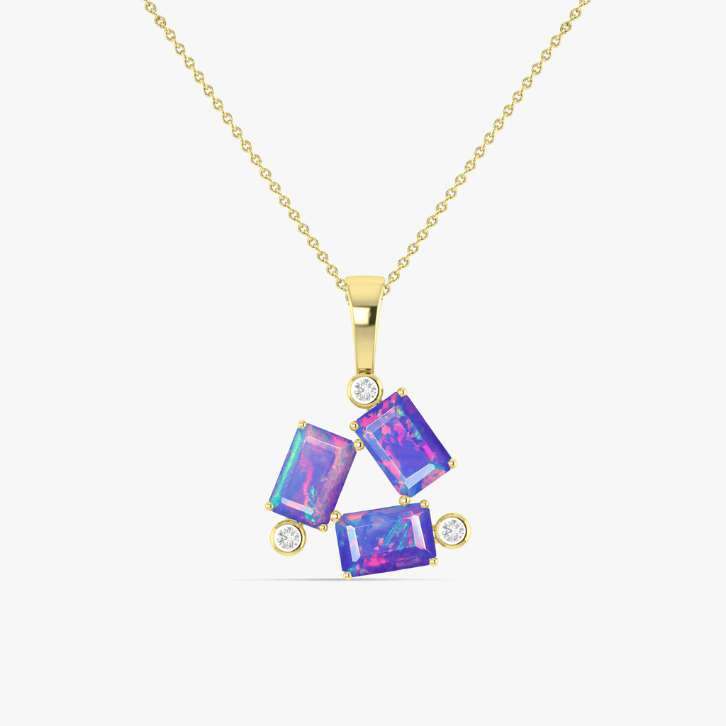 Lavender OpalIntroducing the Lavender Opal Stone Charm Pendant! This beautiful necklace features three baguette gemstone of stunning lavender opal. Wear it to add a touch of elegance and love to any outfit. Perfect for special occasions or everyday wear, this pendant is sure to dazzle and delight.