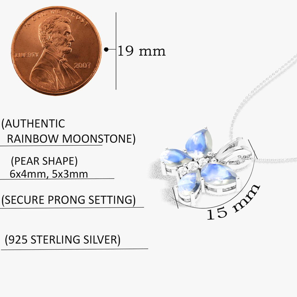 MoonstoneEmbrace ethereal elegance with our Moonstone Butterfly Pendant Necklace, beautifully crafted in 925 sterling silver. This delicate pendant features 1.6 carats of luminous moonstones, including two 6x4mm pear-shaped stones and two 5x3mm pear-shaped stones, arranged in a graceful butterfly design. Symbolizing transformation, intuition, and beauty, this necklace makes a perfect gift or a sophisticated statement piece for any jewelry collection.