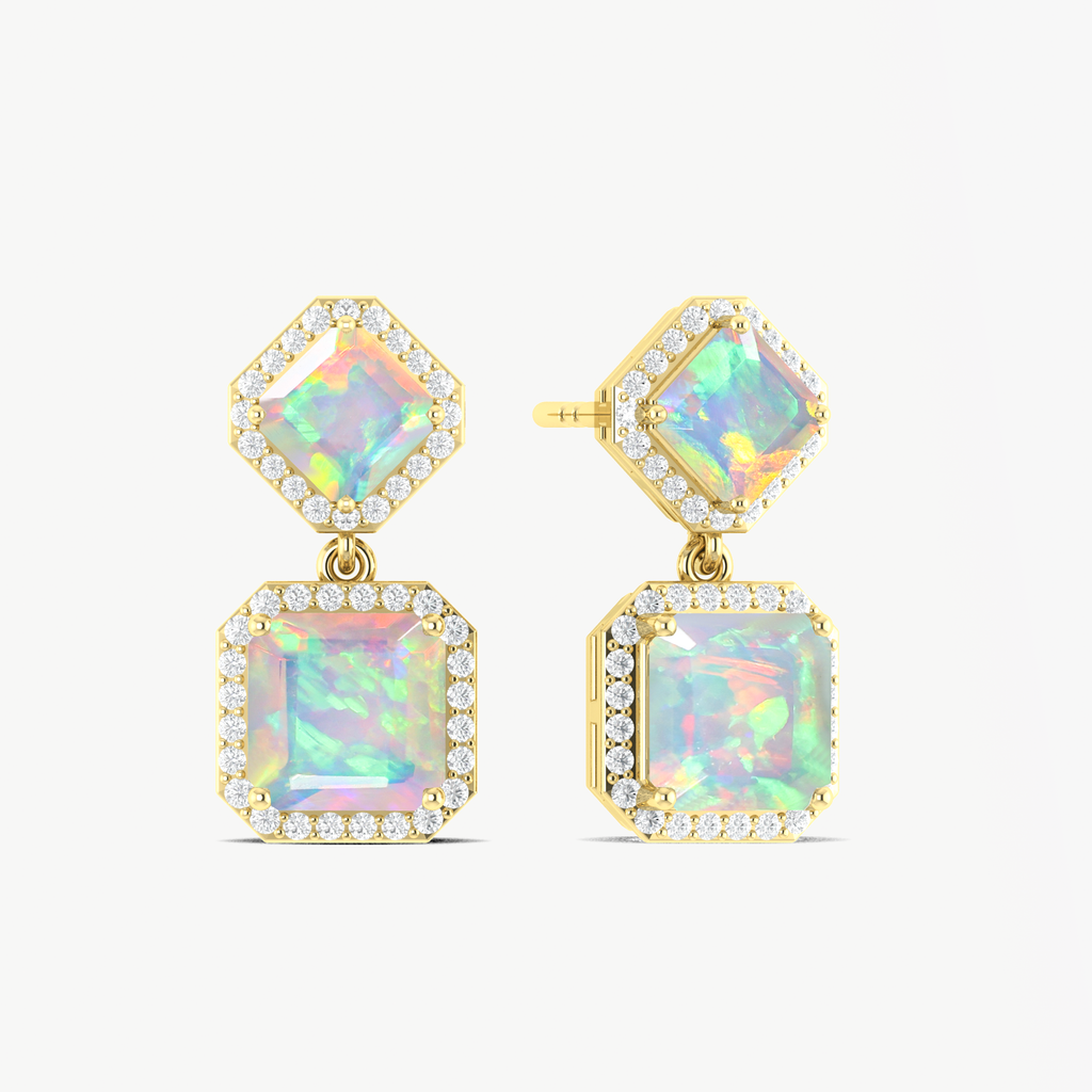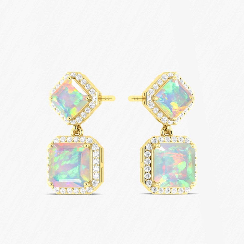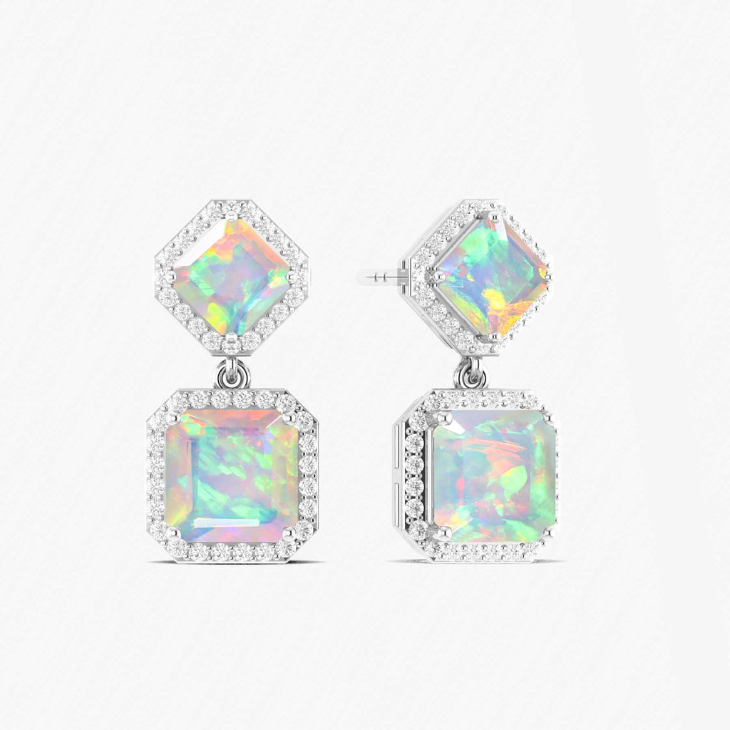 White OpalElevate your style with these exquisite 7x5mm white opal octagon halo drop earrings, crafted in 925 sterling silver. Featuring a total of 3.5ct of dazzling opal, the halo design enhances every facet for a brilliant sparkle. Perfect for weddings, special occasions, or adding a touch of elegance to your everyday look.