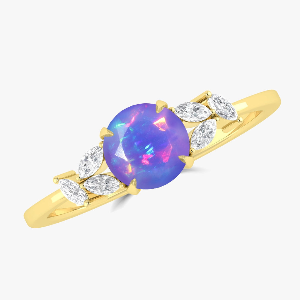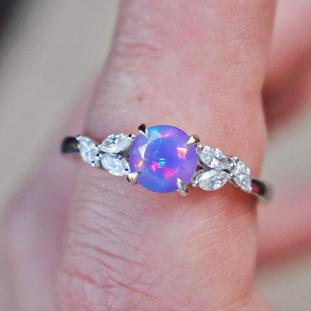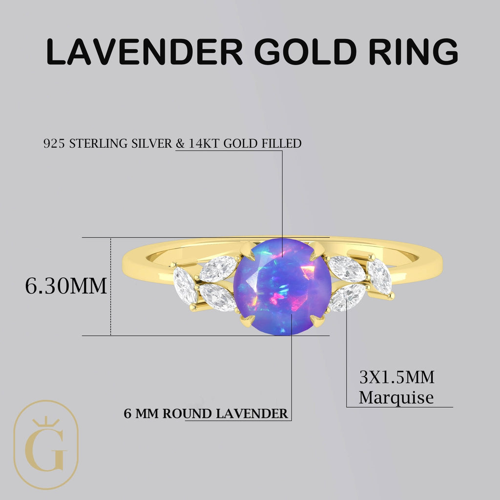 Lavender OpalNatural Lavender Opal 925 Sterling Silver Statement Ring, beautifully crafted for women who appreciate unique and meaningful jewelry. This captivating ring features a 6 mm round natural Lavender Opal (0.8 carat), known for its vibrant play of colors that change beautifully with every movement. Each gemstone is one-of-a-kind, ensuring your ring is as unique as the person wearing it. Expertly handmade with 925 sterling silver, this piece merges durability with sophisticated style. The smooth band offers exceptional comfort, making it perfect for everyday elegance or special occasions.