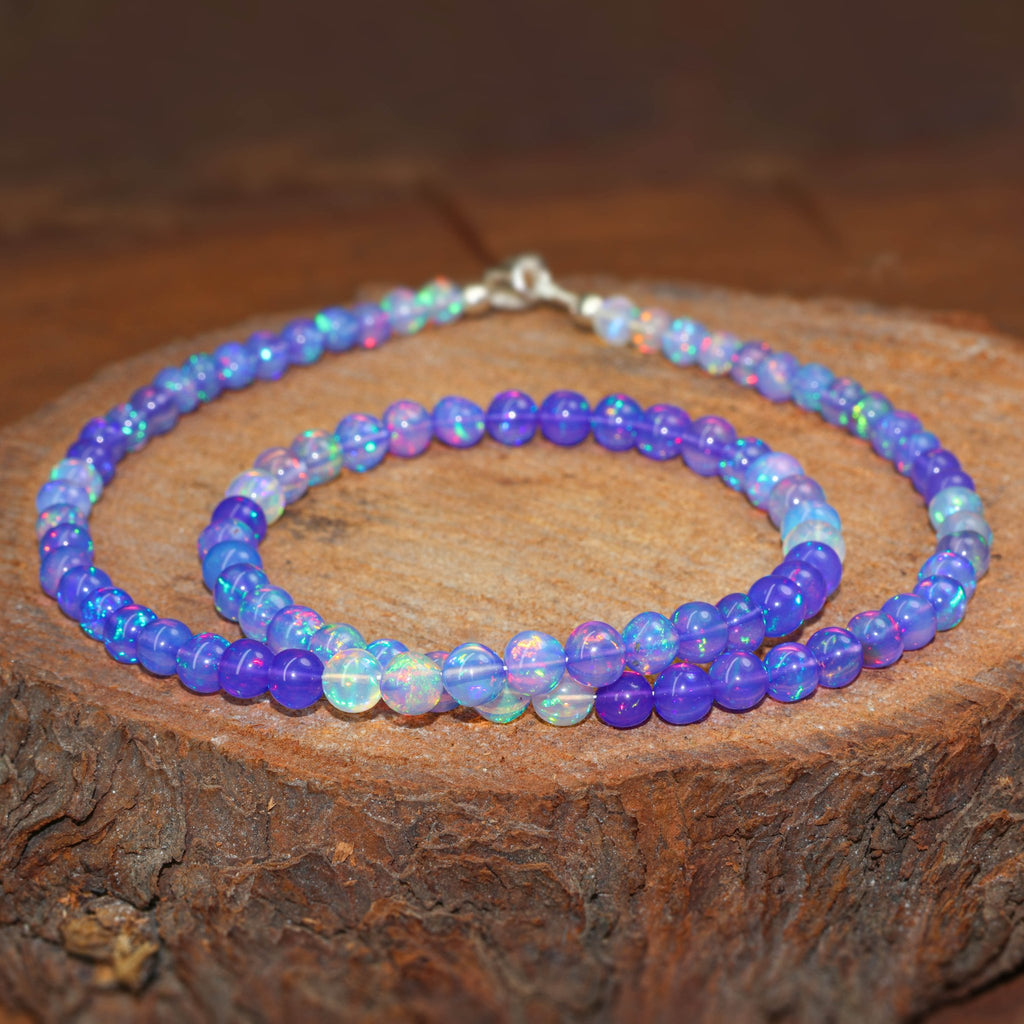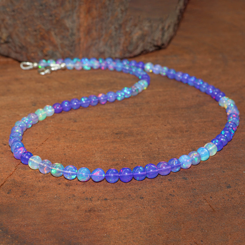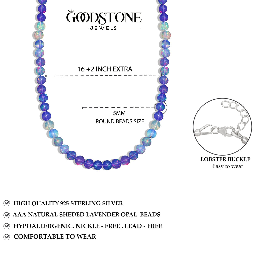 Lavender OpalShine bright with this elegant Lavender Opal Necklace, handcrafted with AAA natural shaded lavender opal beads (5mm) and finished with 14K gold plating.