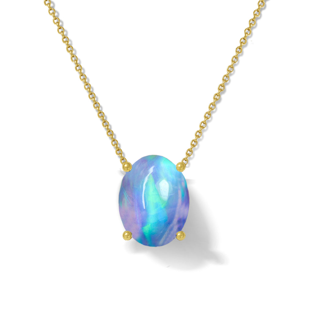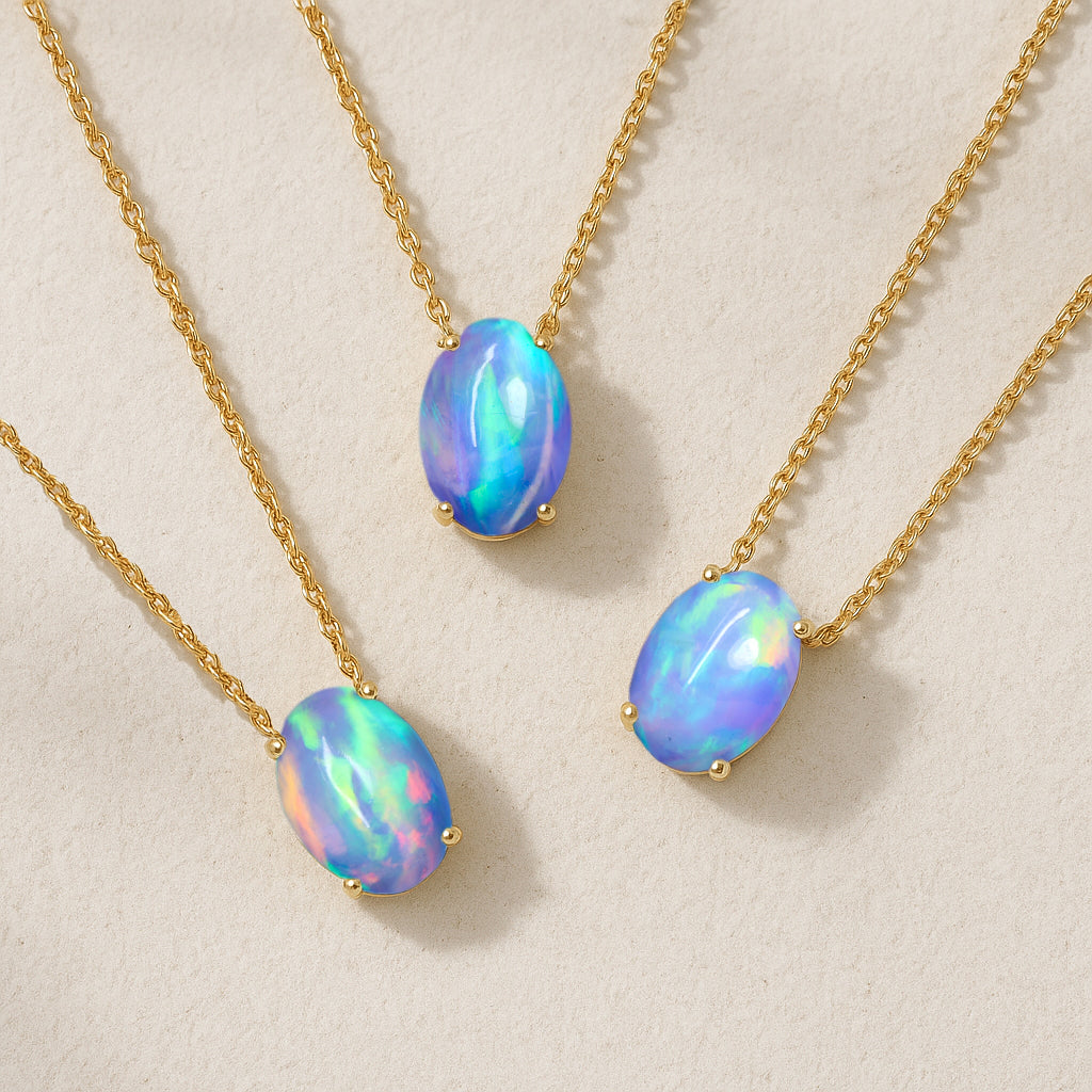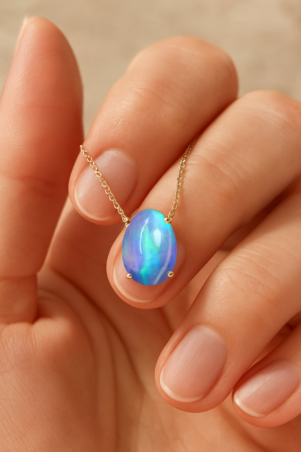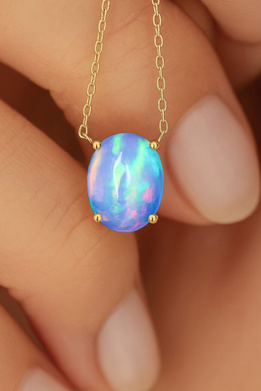 Blue OpalElevate your everyday elegance with this Blue Opal Oval Stone Pendant Necklace, beautifully crafted in premium 925 Sterling Silver. The smooth 8x6 mm opal gemstone (0.9 carat) showcases a soft, luminous glow, adding a touch of sophistication to any look. Its refined pendant size of 8.30x6.30 mm is perfectly paired with a 16" + 2" adjustable cable chain secured by a lobster clasp. Lightweight at approximately 0.95 gm, this necklace is ideal for daily wear or gifting. A timeless accessory that combines simplicity, charm, and modern style.