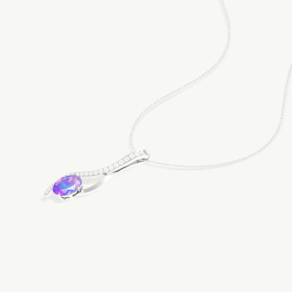 Lavender OpalThis Lavender Opal Oval Swirl Pendant Necklace is crafted in genuine 925 Sterling Silver, featuring a single 9×7 mm oval lavender opal stone weighing 1.2 carats. The pendant measures 36 × 9.2 mm with an elegant swirl design, adding a soft, charming touch. It hangs from a 16” cable chain with a 2” extender and secure lobster clasp. Weighing 2.9 grams, this necklace is perfect for everyday wear, special occasions, or gifting to someone special.
