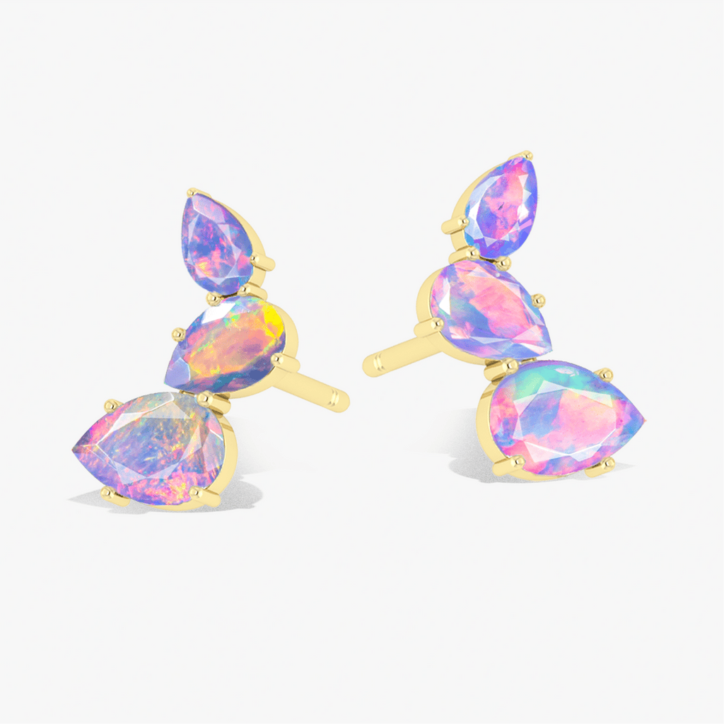 Introducing the Opal Horn Style Stud Earrings! This beautiful earring features three pear of stunning opal gemstone. Wear it to add a touch of elegance and love to any outfit. Perfect for special occasions or everyday wear, this earring is sure to dazzle and delight.