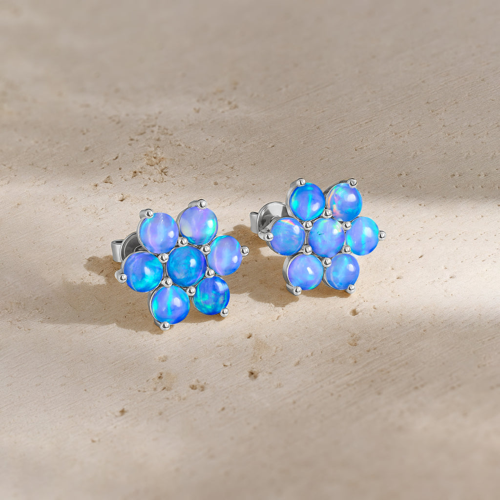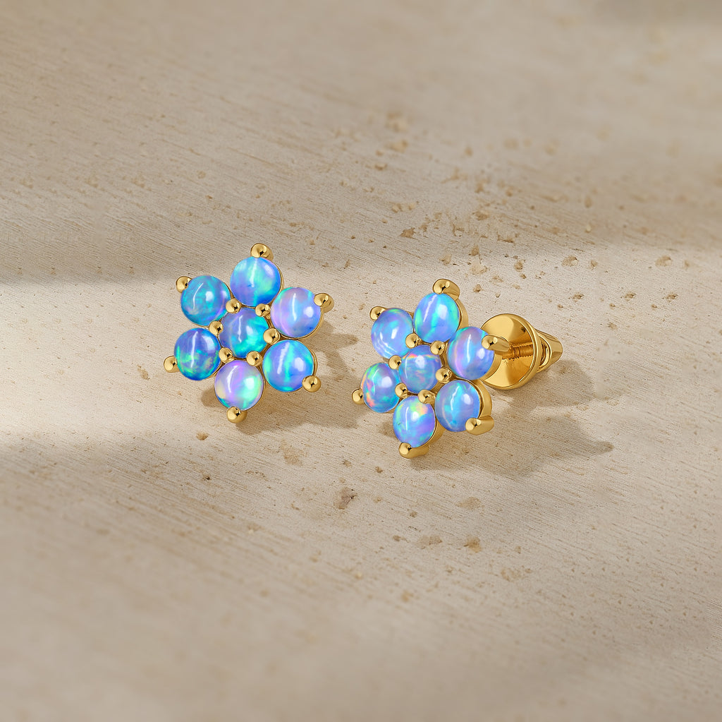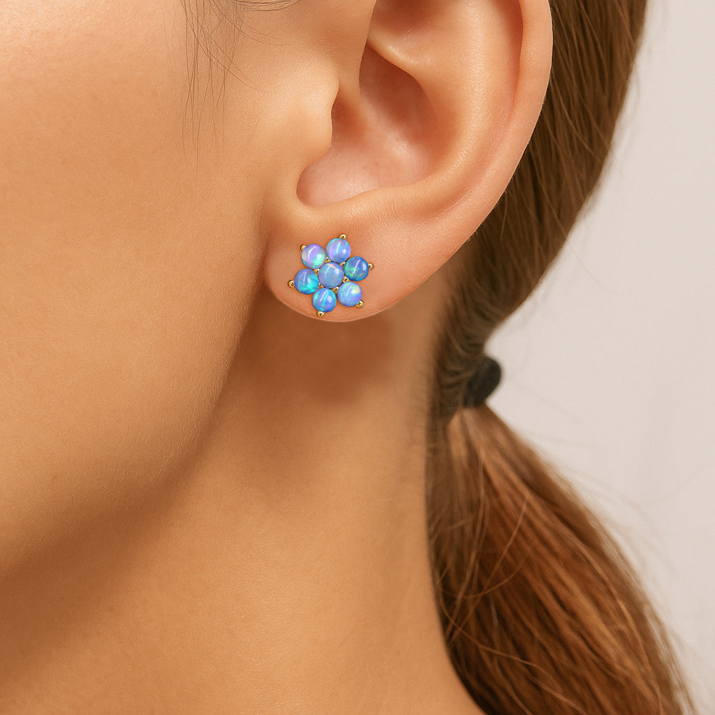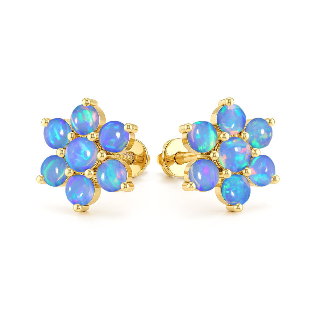 Blue OpalElevate your everyday elegance with these Blue Opal Round Stone Stud Earrings, beautifully crafted in 925 Sterling Silver. Featuring 14 smooth 3 mm round opal stones totaling 2.80 carats, each earring reflects a soft iridescent glow that enhances any look from casual chic to refined evening wear. With a size of 11.88 x 10.46 mm and a solid 3.60 gm build, these studs offer both durability and luxury. The high polish silver setting enhances the natural fire of the opal, making this pair a perfect gift for birthdays, anniversaries, or opal lovers. A timeless, luminous addition to your fine jewelry collection.