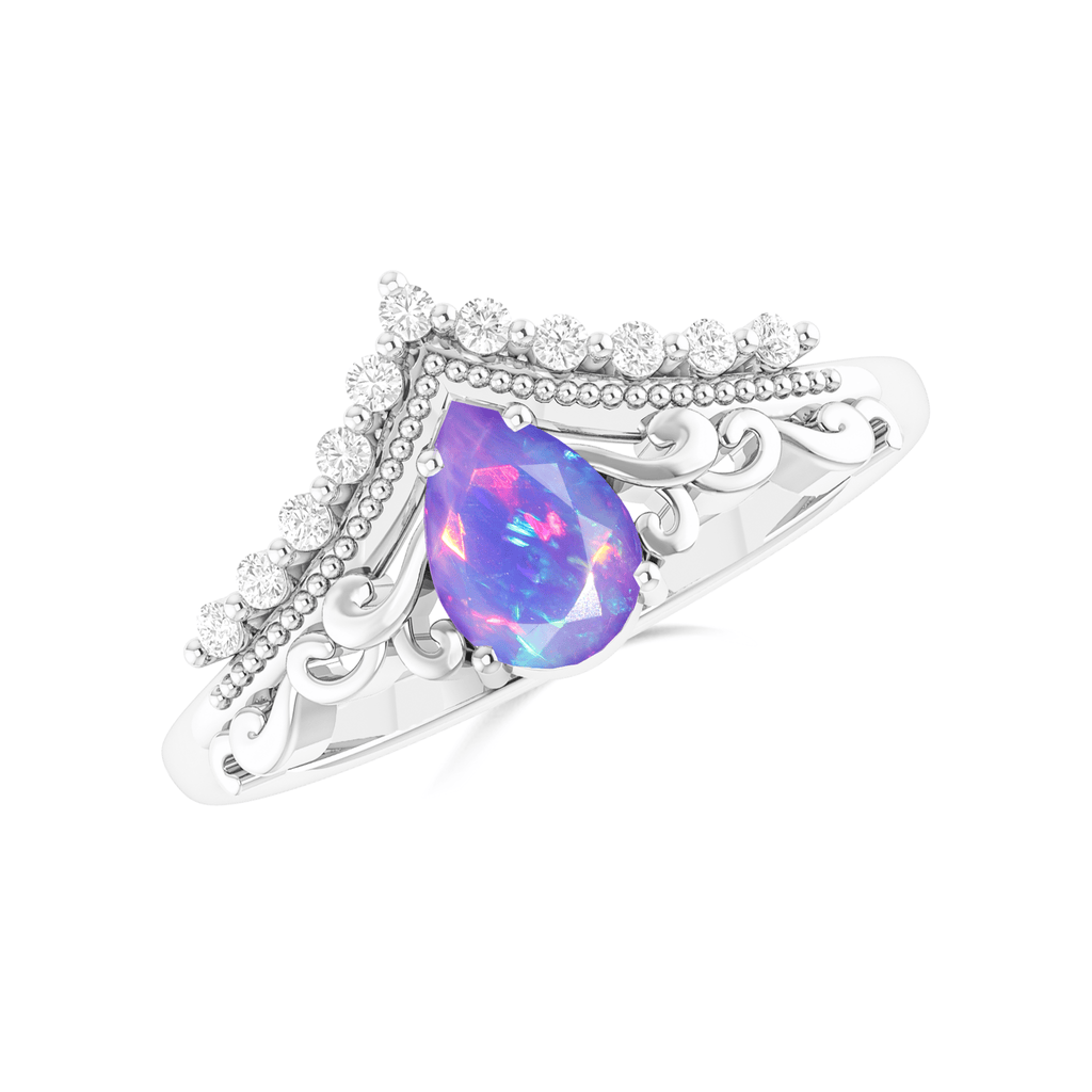 Lavender OpalNatural Lavender Opal 925 Sterling Silver Crown Style Wishbone Ring, designed to captivate and inspire. Featuring a dazzling 6x4 mm pear-shaped natural Lavender Opal, this ring is a true celebration of beauty, brilliance, and meaning. The crown-inspired setting enhances the Lavender Opal's vibrant play of color, making this a standout accessory for any occasion. Expertly crafted from high-quality 925 sterling silver, this ring combines luxury and durability. The warm gold tones beautifully contrast with the mesmerizing Lavender Opal, creating a statement piece that’s both bold and feminine. Whether you're dressing up for a wedding or adding a touch of glamour to your everyday look, this ring effortlessly elevates your style.