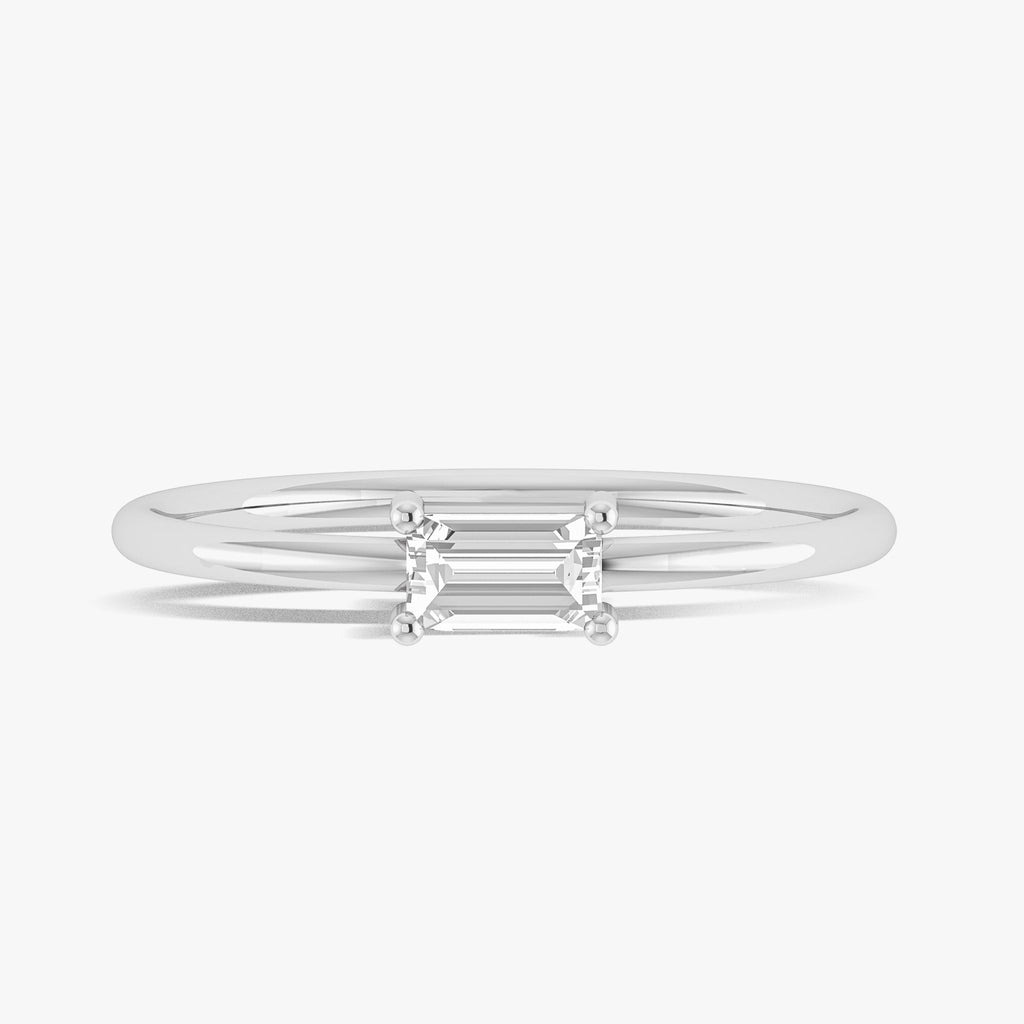 MoissaniteThis beautiful ring features a dazzling baguette-cut moissanite gemstone, known for its brilliance that rivals diamonds. Sparkling round cubic zirconia diamonds add extra sparkle. The ring is made of 925 sterling silver and is perfect for any occasion.