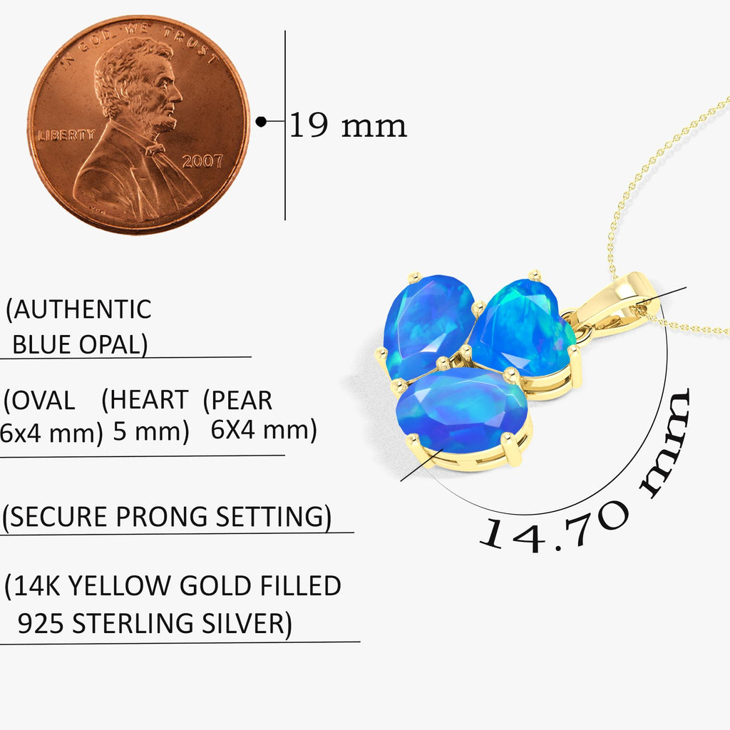 Blue OpalEnhance your style with the mesmerizing Blue Opal 3 Stone Heart Pendant Necklace, expertly crafted in 925 sterling silver. This elegant pendant features a 1.3-carat blue opal centerpiece, complemented by a 5mm heart-shaped stone and 6x4mm pear & oval-cut stones, creating a sparkling three-stone design that represents love, elegance, and timeless beauty. Perfect for gifting or personal indulgence, this necklace combines classic charm with modern sophistication.